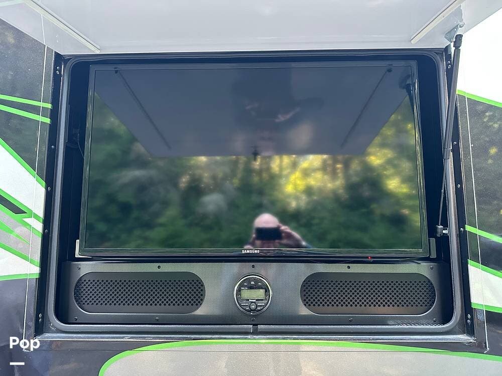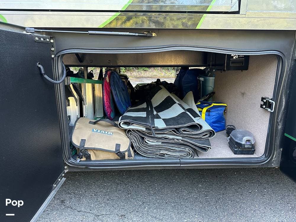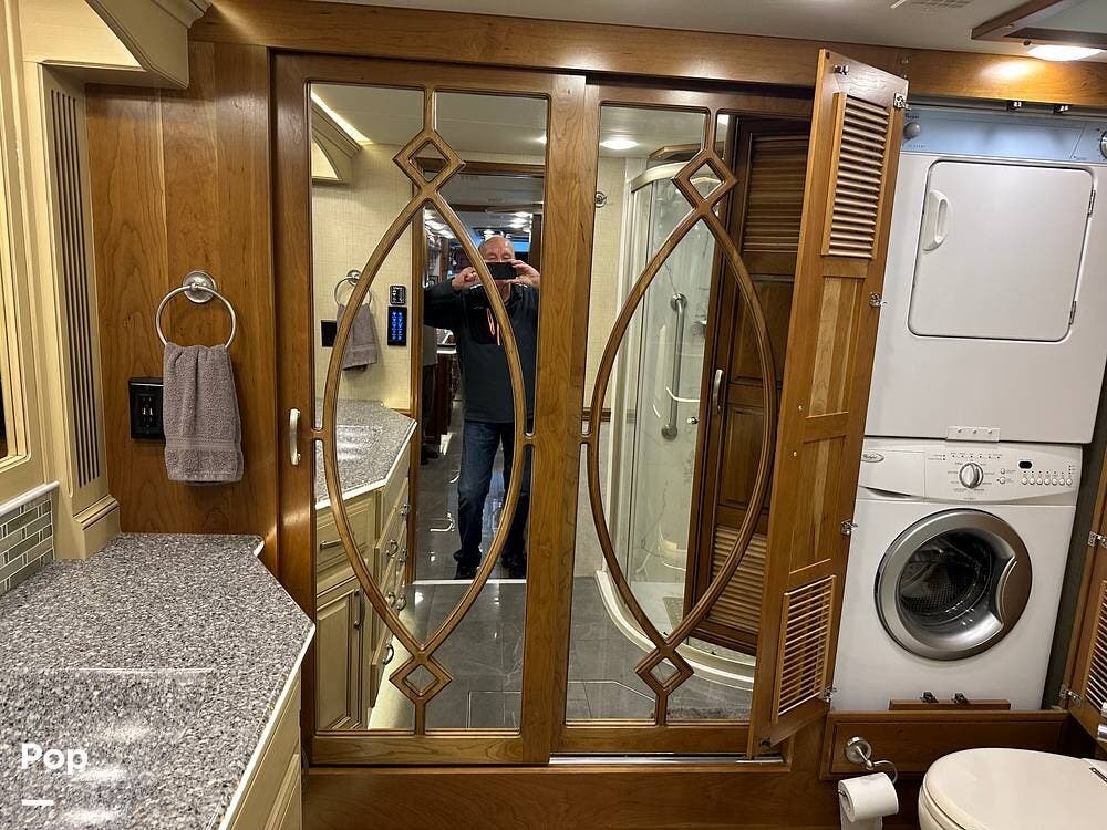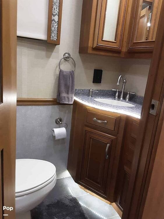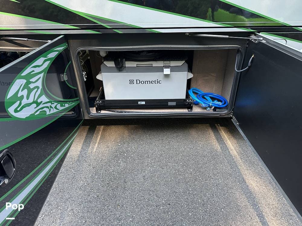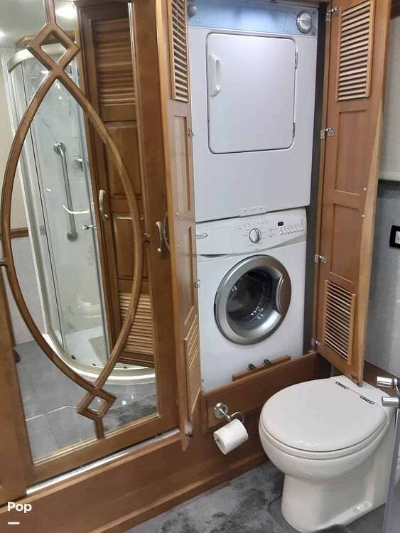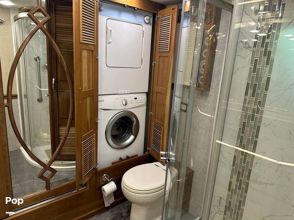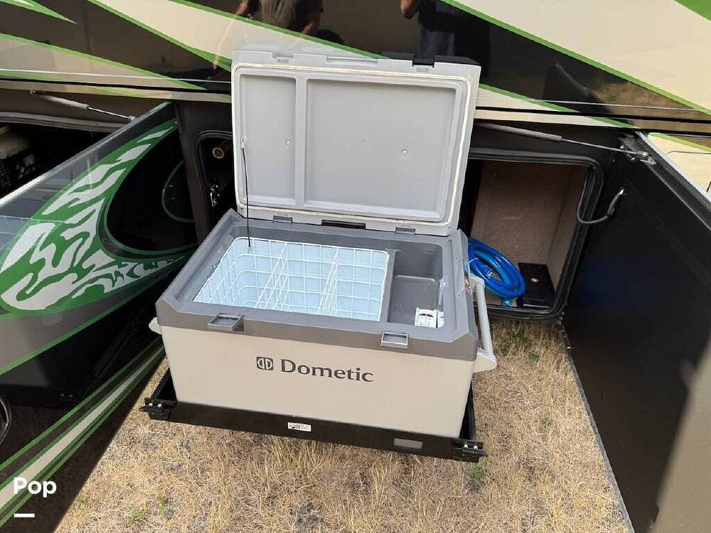 A luxurious living area with high-end furnishings and contemporary conveniences can be found within. The coach's open floor plan makes it simple to move around, and the wide windows let in an abundance of natural light. The kitchen features a dining area for eating meals on the go, ample storage space, and top-of-the-line appliances.