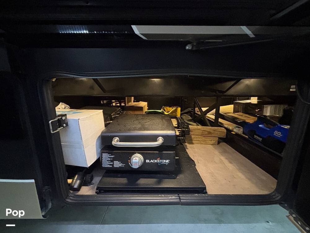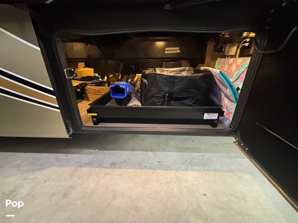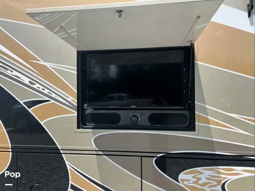 The power awnings, exterior entertainment center, and pass-through bays give you well-designed outdoor living options, and the coach's insulated construction and frameless windows work together to maintain comfort regardless of the climate.