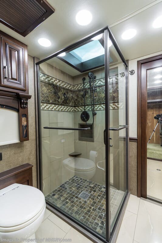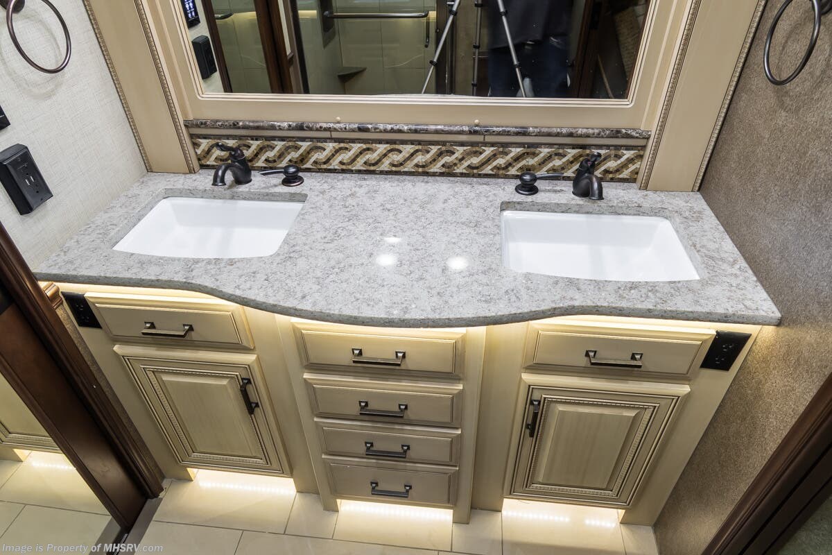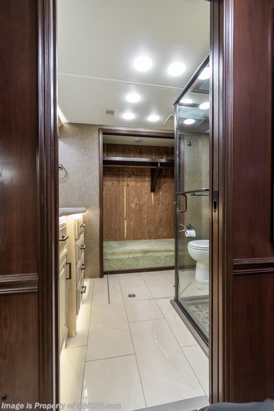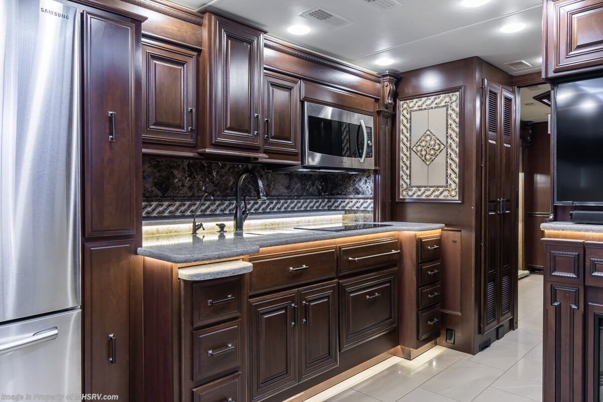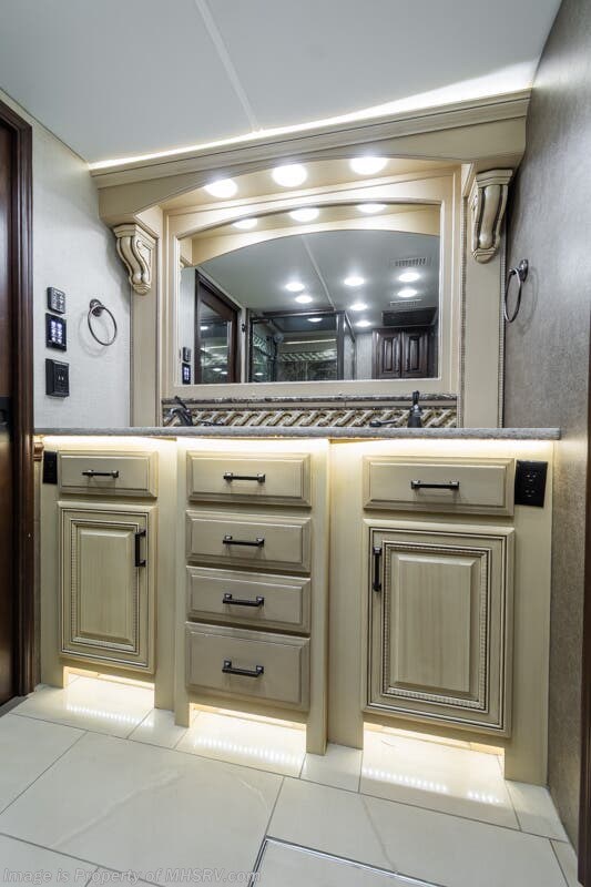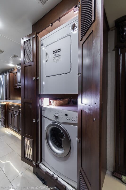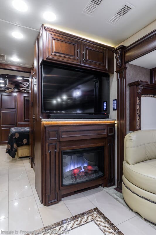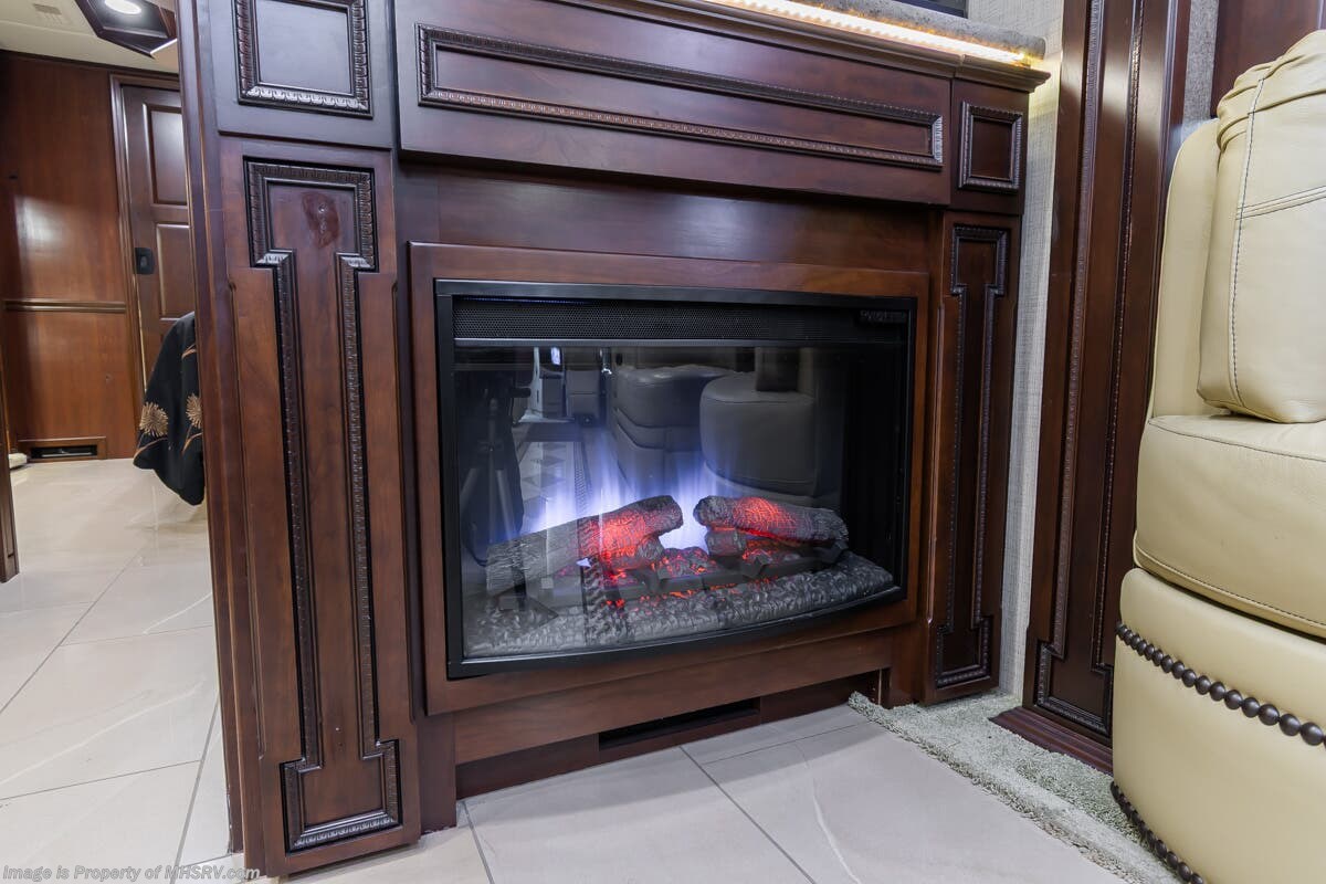 More About This RV This RV features aluminum wheels, full body paint, 3 camera system, hydraulic leveling, 3 A/C's, diesel generator, satellite dish, spartan chassis, cummins diesel engine, tilt/telescoping steering wheel, secondary engine brake, power pedals, keyless entry, GPS, cruise control, patio awning, door awning, pass through storage, cargo tray, LED running lights, docking lights, black tank flush, water filtration system, power electrical reel, exterior freezer, exterior TV, solar, air ride, lithium batteries, ceramic tile, all electric coach, leather seating, central vacuum, heated floors, dual pane windows, 7 foot ceilings, fireplace, multi-plex control panel, hardwood cabinet, convection microwave, dishwasher, residential refrigerator with ice maker, bath and a half and much more