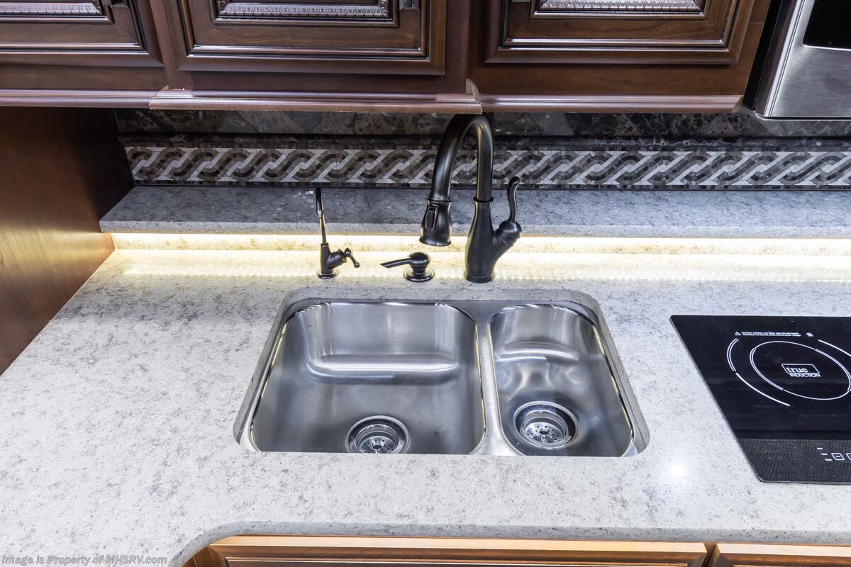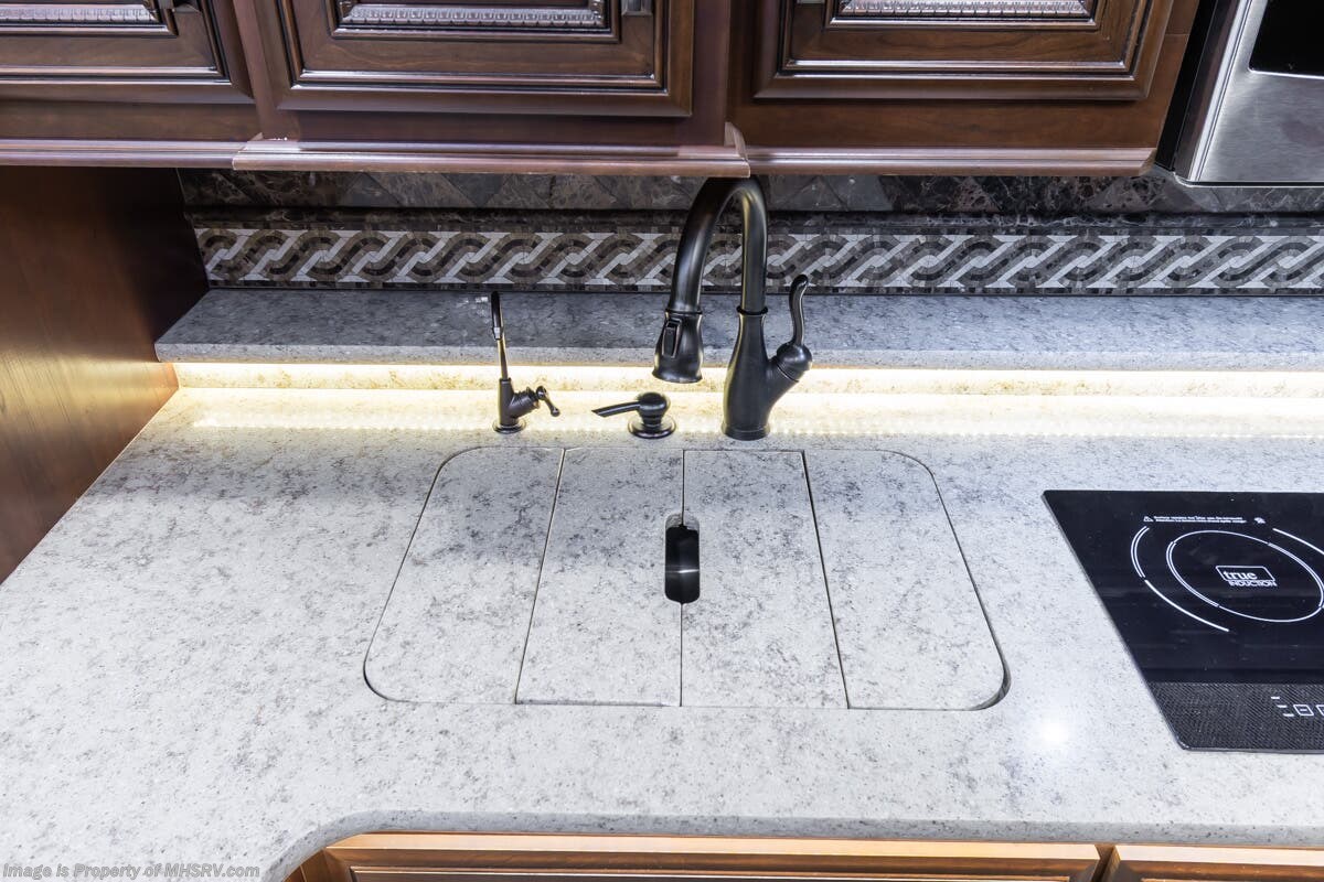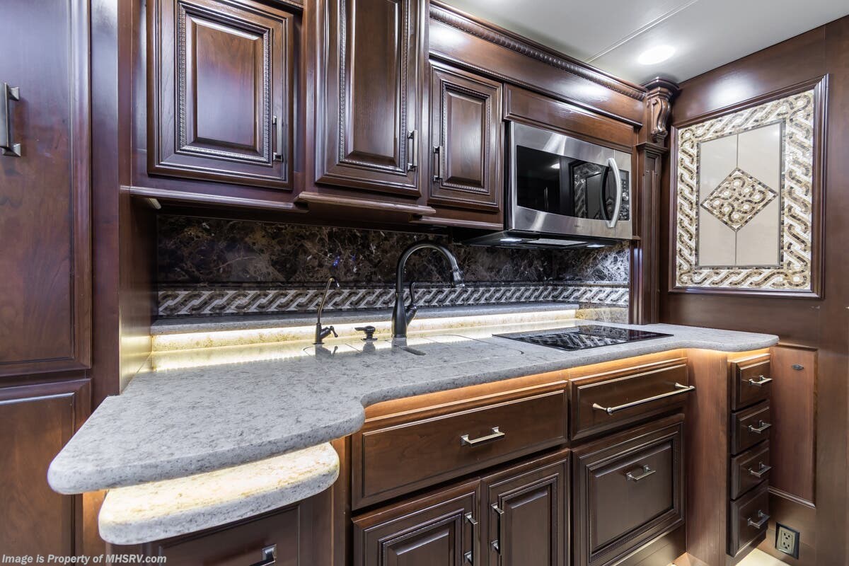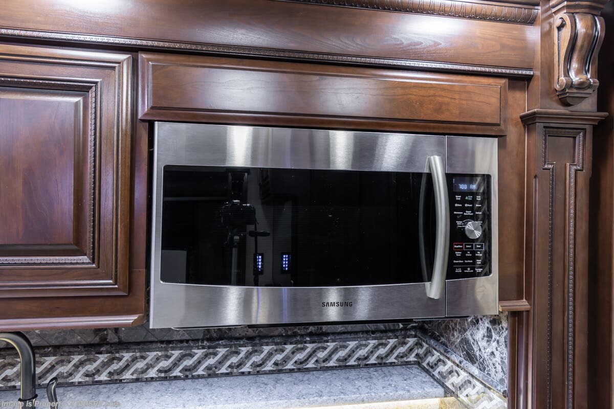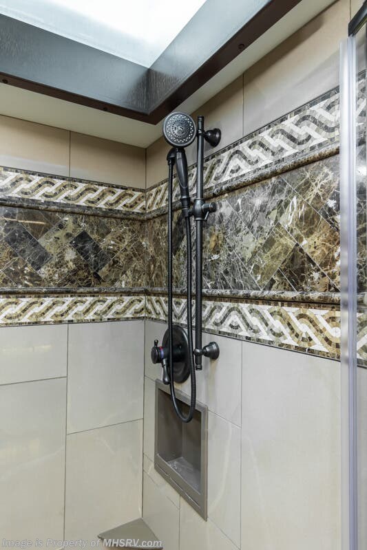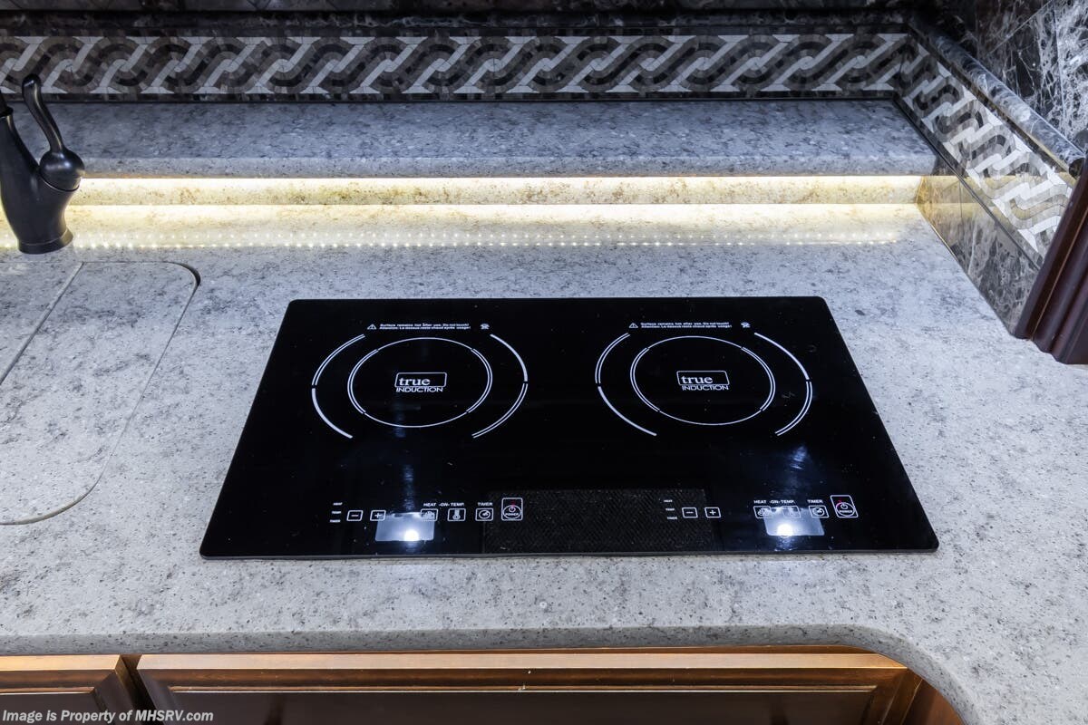 More About This RV This RV features aluminum wheels, full body paint, 3 camera system, hydraulic leveling, 3 A/C's, diesel generator, satellite dish, spartan chassis, cummins diesel engine, tilt/telescoping steering wheel, secondary engine brake, power pedals, keyless entry, GPS, cruise control, patio awning, door awning, pass through storage, cargo tray, LED running lights, docking lights, black tank flush, water filtration system, power electrical reel, exterior freezer, exterior TV, solar, air ride, lithium batteries, ceramic tile, all electric coach, leather seating, central vacuum, heated floors, dual pane windows, 7 foot ceilings, fireplace, multi-plex control panel, hardwood cabinet, convection microwave, dishwasher, residential refrigerator with ice maker, bath and a half and much more