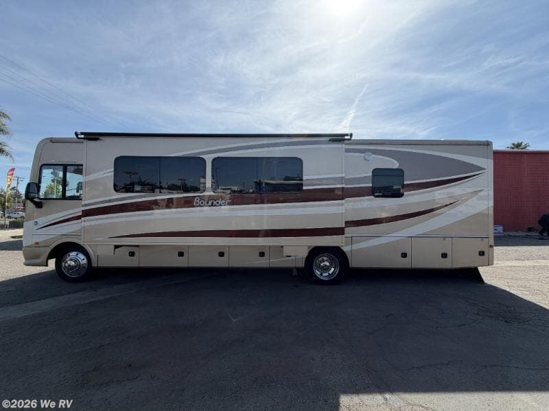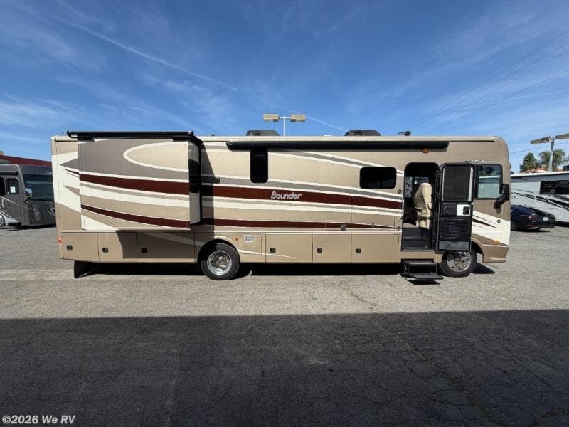 The Bounder 35K Fleetwood motor home features a rear master bathroom as well as convenient half bath.