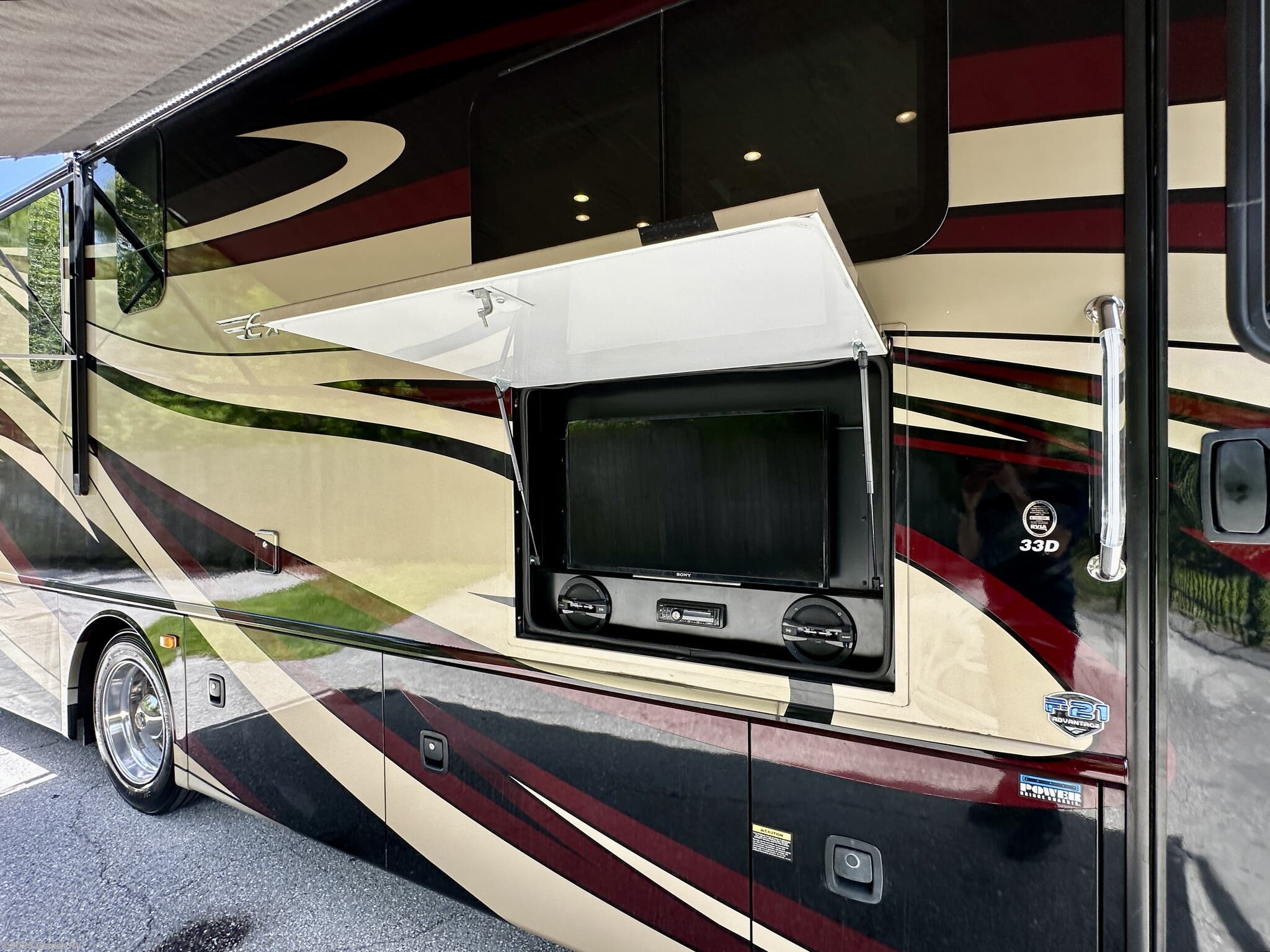 Automatic Leveling Jacks, Full Body Paint, Outside Entertainment Center, Power Awning, Power Entrance Step, Second Roof A/C -