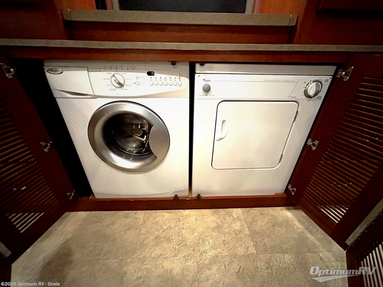 The following options will help to make this motor home more suited to your needs or wants. There is an exterior entertainment center, washer/dryer, theater seating sofa with recliners, hide-a-loft drop down queen bed, facing dinette, or queen bed with memory foam, and more!
