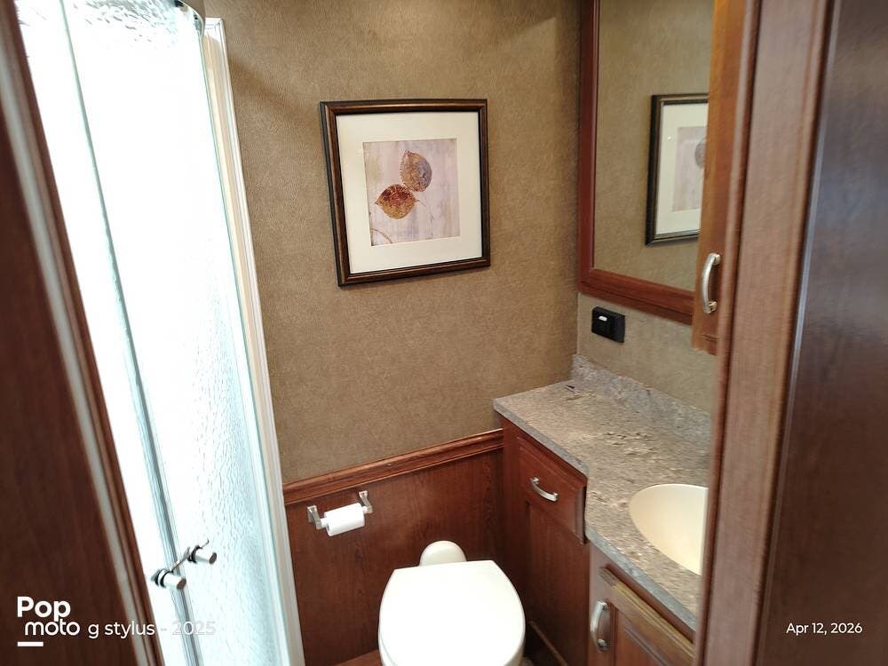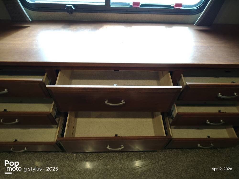 Your comfort ride is assured by the Neway Air Suspension and Sachs-tuned shocks. She rides on Michelin XRV 22.5 in fourteen ply radial tires wrapped around polished aluminum wheels.