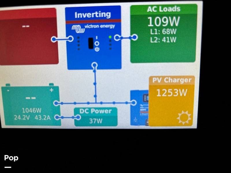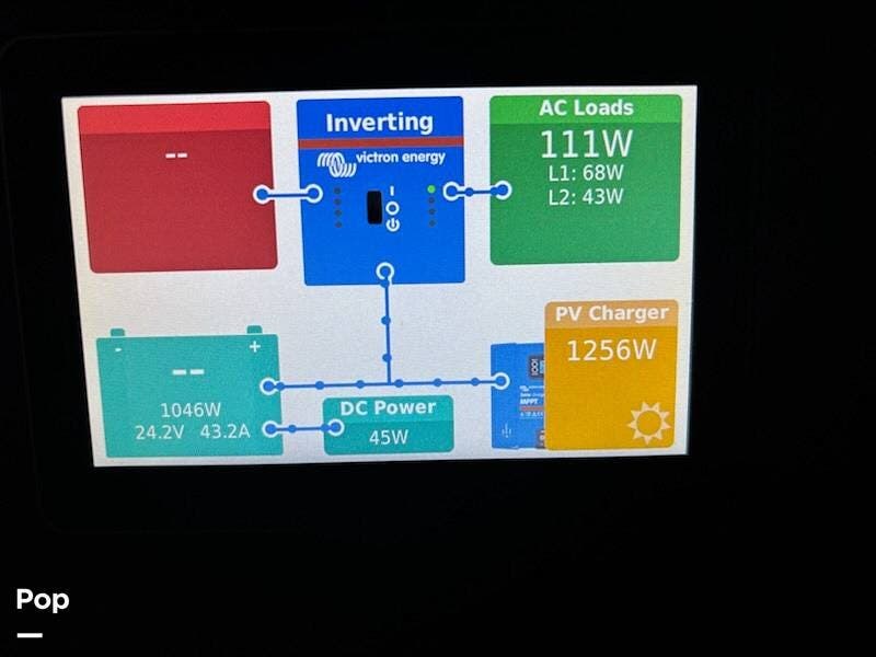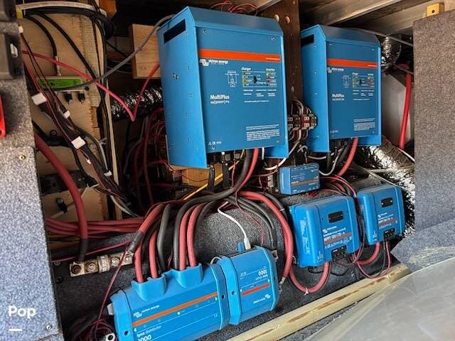 Solar package includes 10 200-watt roof-mounted panels, 2 Victron Multi-Plus 3000VA 24/3000VA/70, and 4 Tesla Model S 24V/220Ah lithium-ion batteries. 2-Victron Smart solar 150/70 charge controllers and 2-Victron Onon DC-AC CONVERTERS24/12-70 AMP.