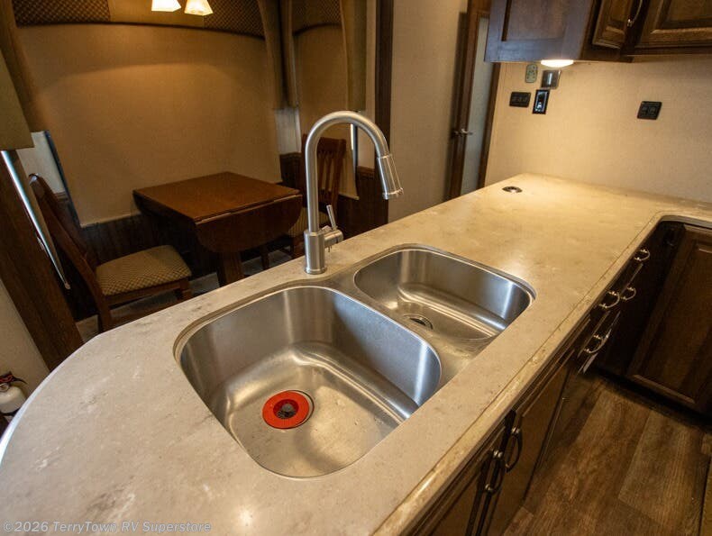 The Estate Package is available on this model. A few features included in this package are, a two burner induction stove top, double drawer dishwasher, three air conditioners, lighted kitchen backsplash, and so much more! You can even choose exterior colors in Gun Metal or Pinot Girgio.