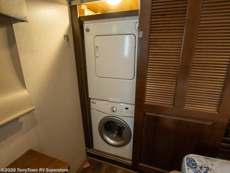 In the rear bedroom the king bed is on a slide or you can choose an optional queen. Across from the bed there is a dresser, and along the rear wall of the room you will find a wardrobe, dresser, and a closet washer/dryer prep, and so much more!
