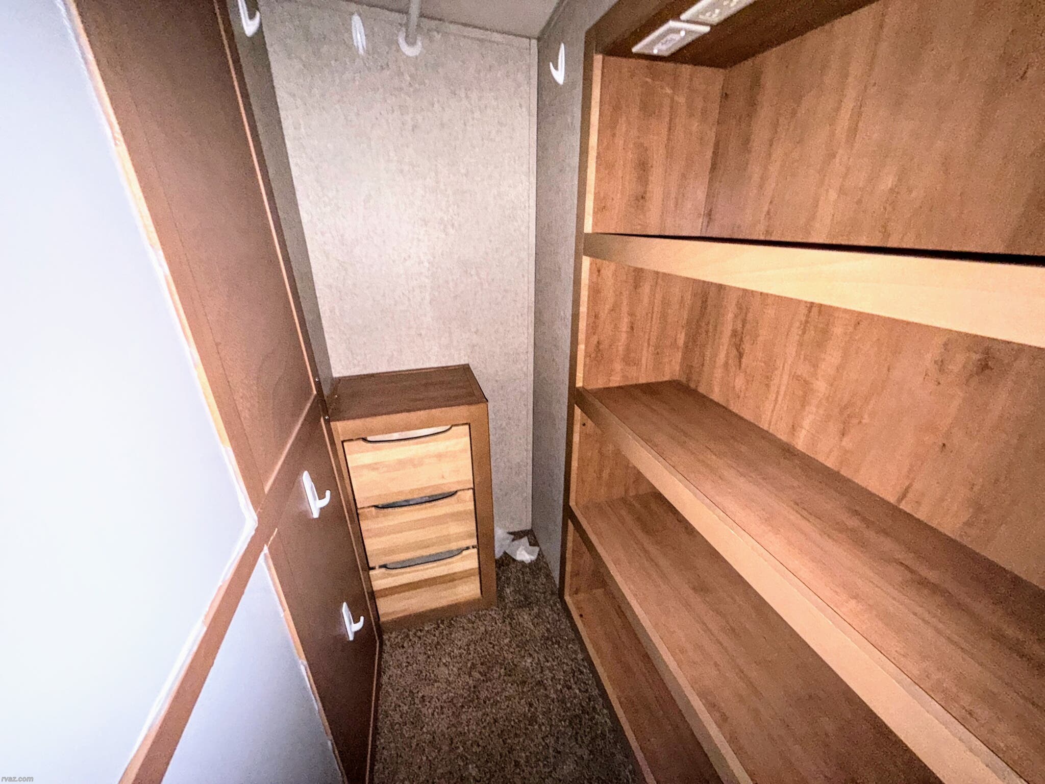 The Cedar Creek features a thoughtfully designed interior, offering a seamless blend of comfort and convenience. Highlights include a cozy queen bed, a pair of rocker recliners, and a free-standing dinette with chairs—creating inviting spaces for relaxation and dining. The RV boasts modern amenities such as a fireplace, ceiling fan, and a central vacuum system, enhancing your travel experience. The interior’s smart layout is complemented by 3 slide-outs, expanding the living area when parked.
