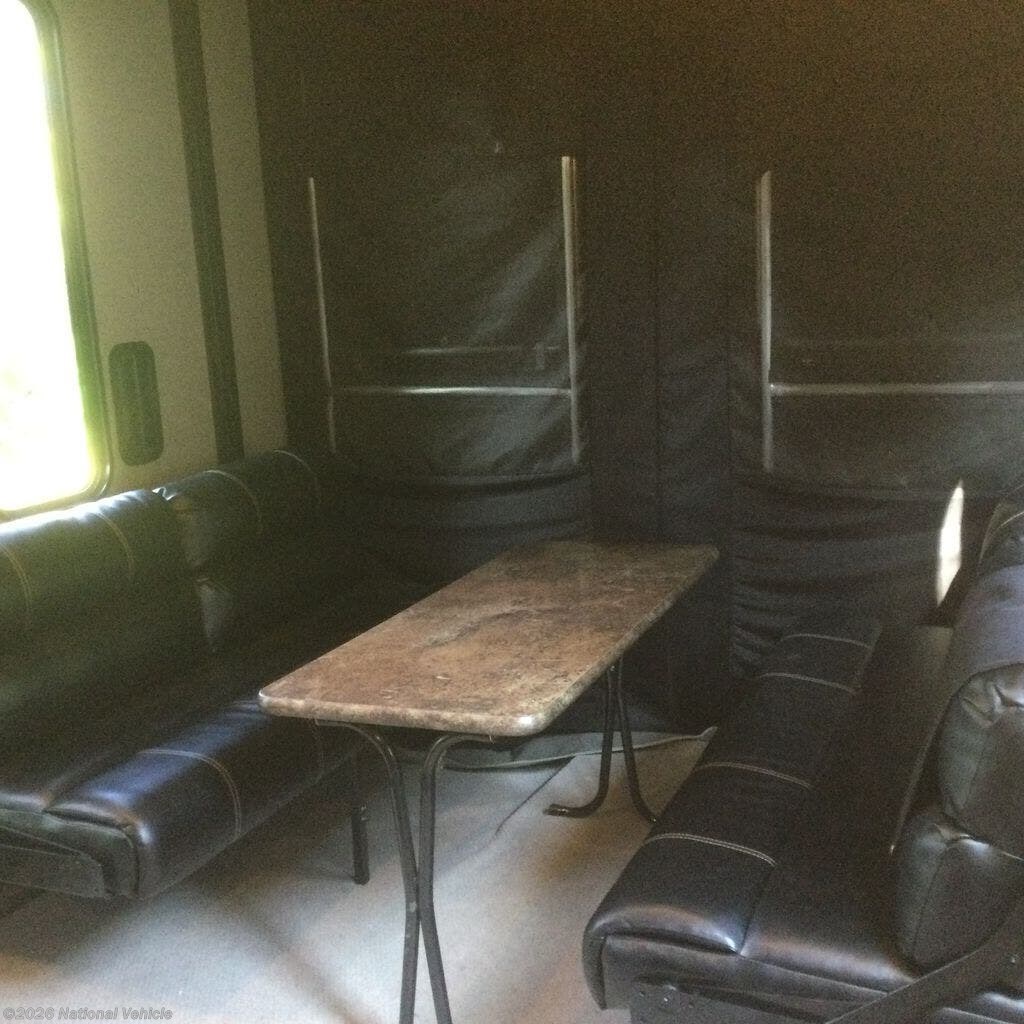 As you move into the main living area of this unit you will see a spacious retreat with almost everything you need while traveling away from home. The kitchen features a refrigerator, stove, storage cabinets, microwave, and a kitchen sink for easy cleanup, and booth seating.