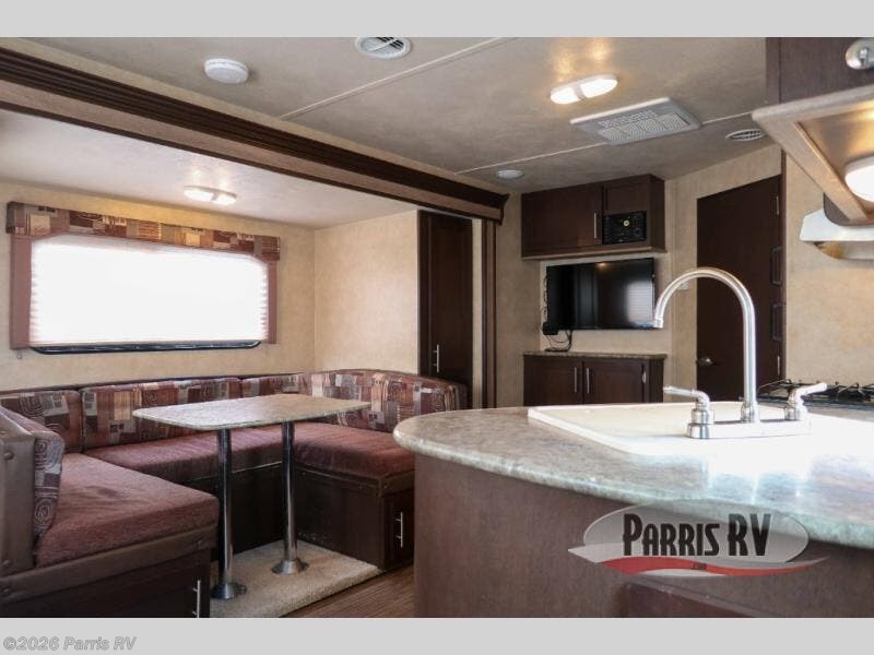 The EVO T2460 travel trailer by Forest River features dual entry, a walk-thru bath, a U-shaped dinette slide, and a rear living area to make any adventure one to remember!