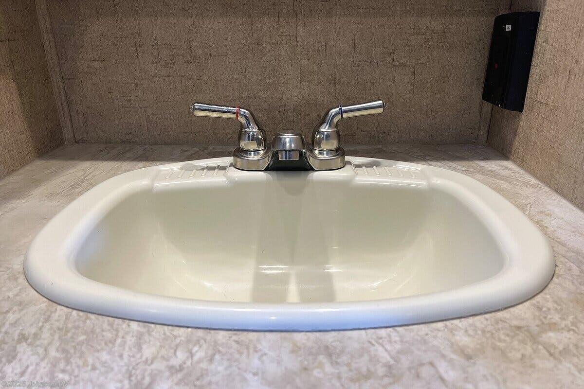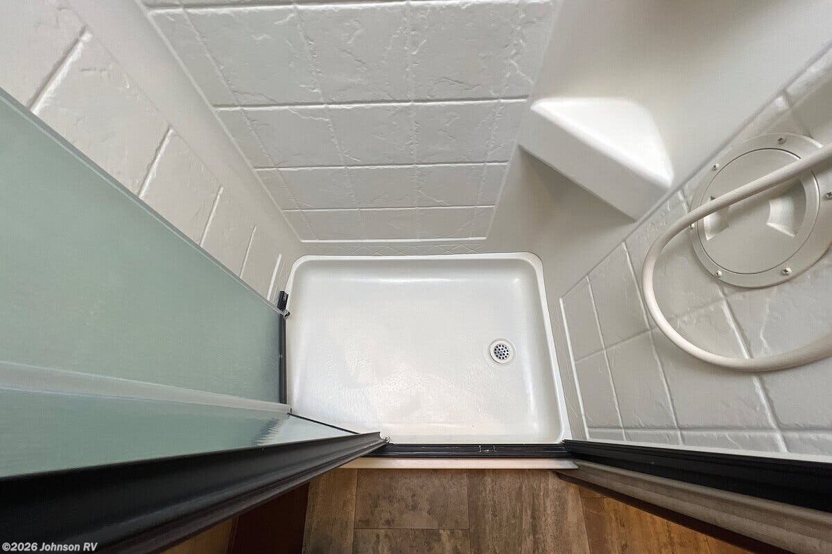 Features Include: Spare Tire (na LE), Overhead Bunk, Child Seat Tethers, High Rise Faucet, Sink Covers, Systems Center, Jack Digital Antenna, Bedspread, Towel Bar, Shower Skylight, Glass Shower Door, Porcelain Toilet, Solar Prep, 9.8-Gal LP Capacity, 30k Furnace, 13.5k Ducted Roof AC, 6-Gal DSI Hot Water, Water Heater Bypass, Aluminum Framed, Fiberglass Roof, Roof Ladder, Slideout Awnings