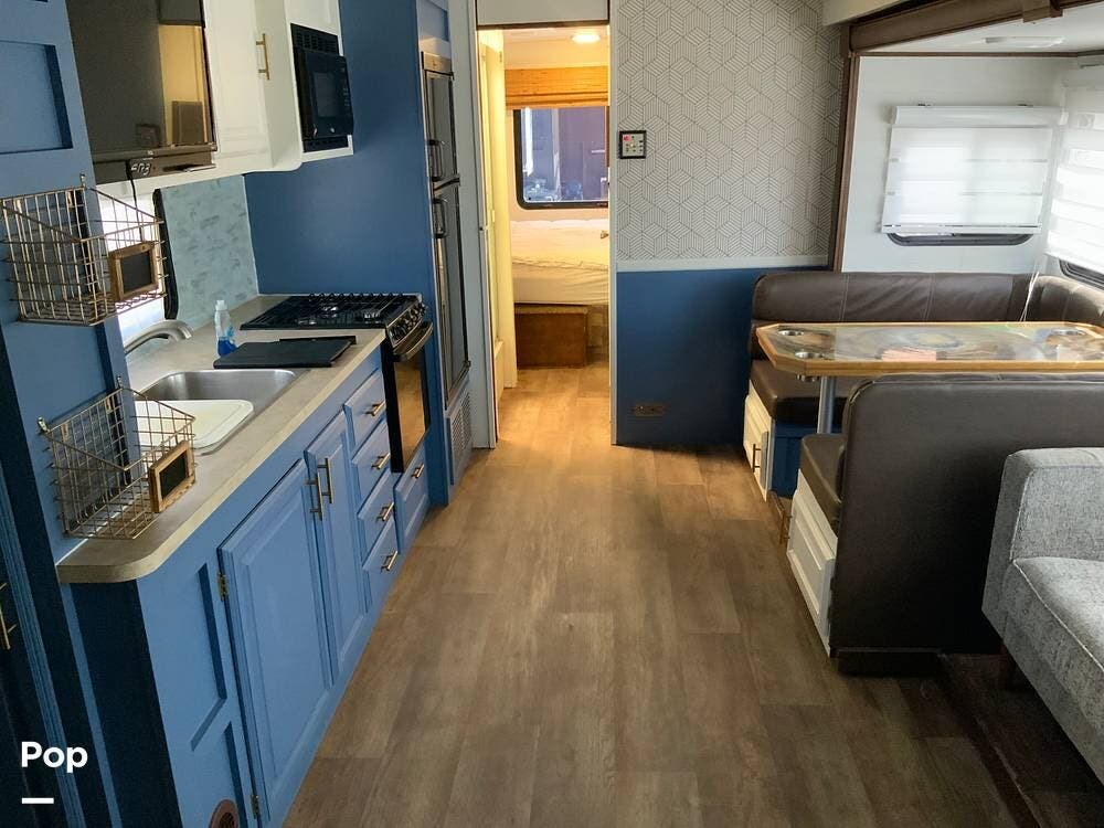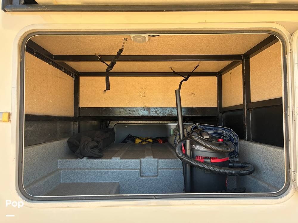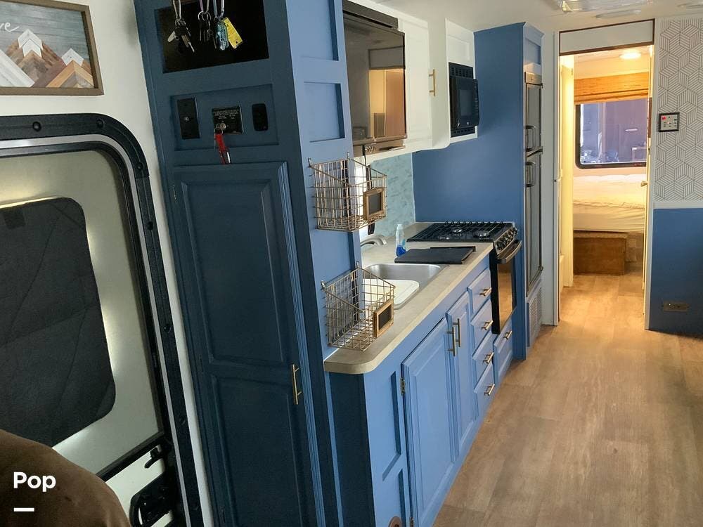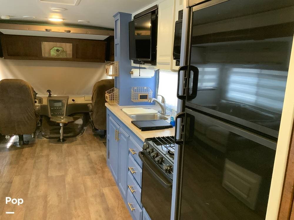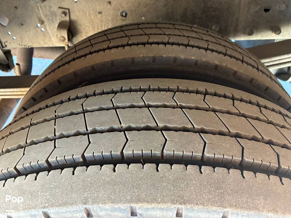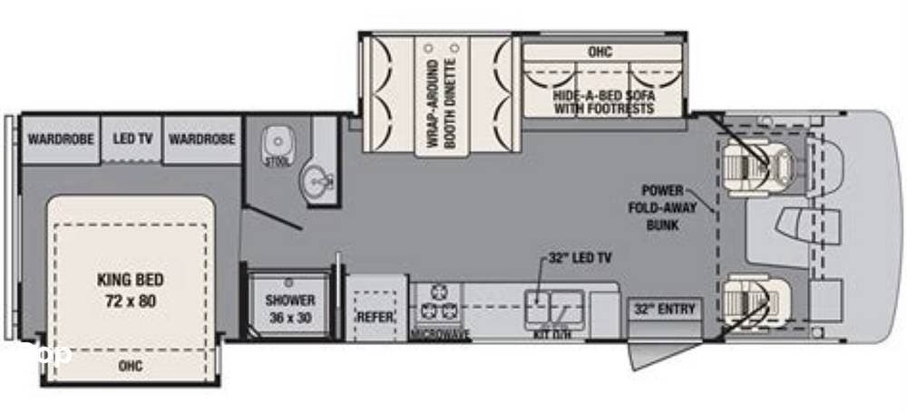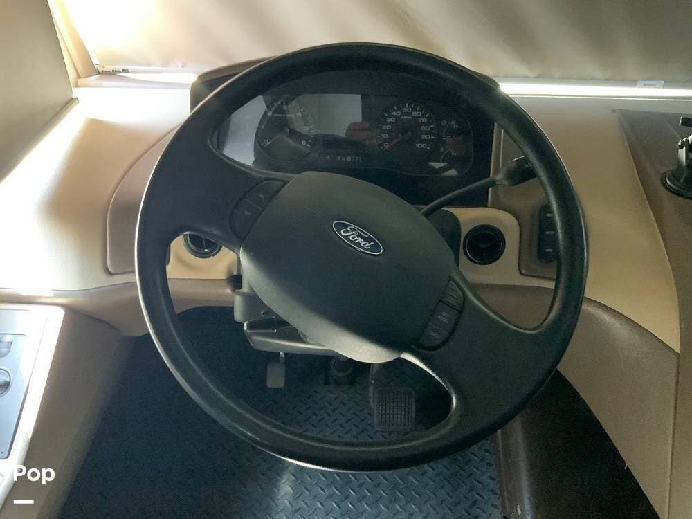 For convenience, you'll find hydraulic leveling jacks, an Onan 4,000-watt generator, a large pass-through storage bay, and a power awning with LED lighting. Built on the proven Ford F-53 chassis with the Triton V10, it delivers 362 horsepower and a 5,000-lb towing capacity -- plenty of power for your travels.