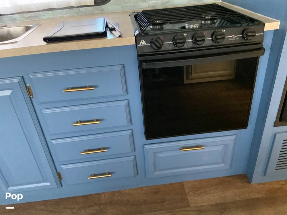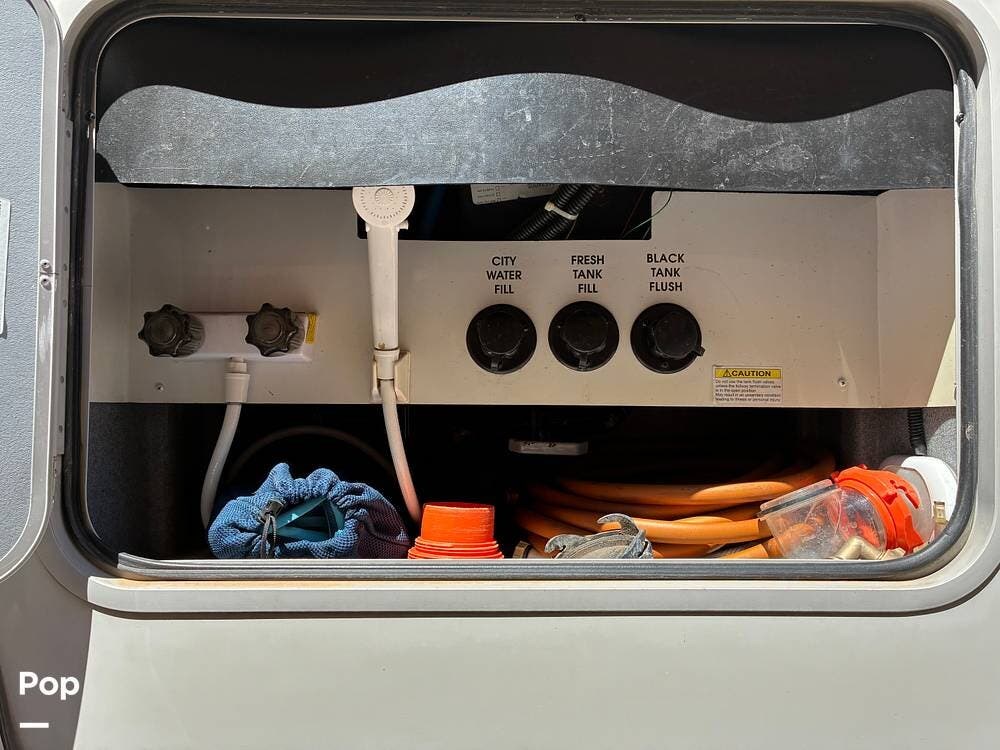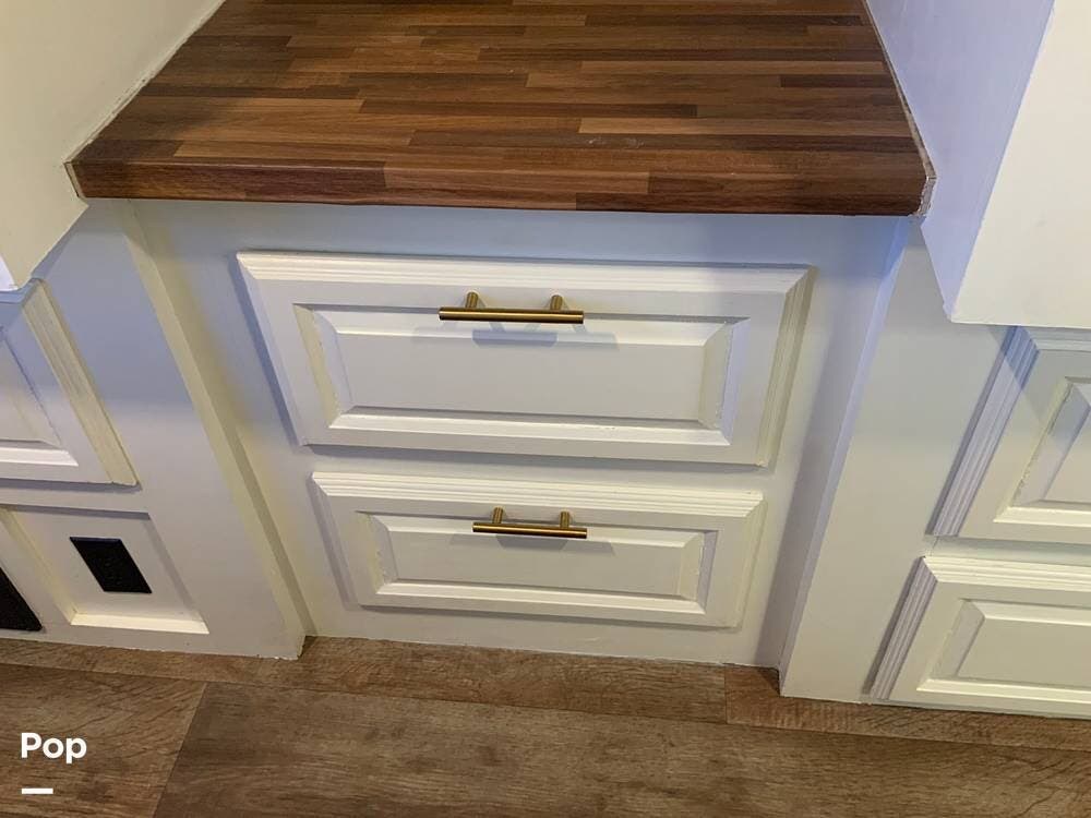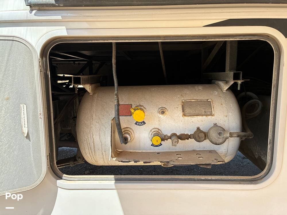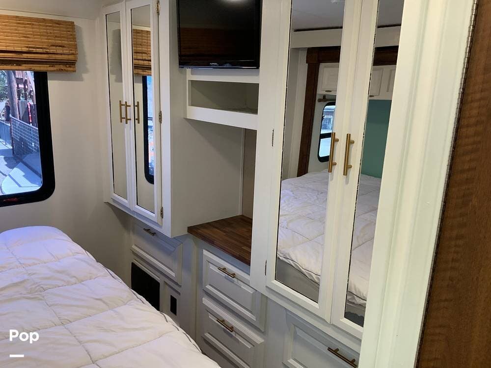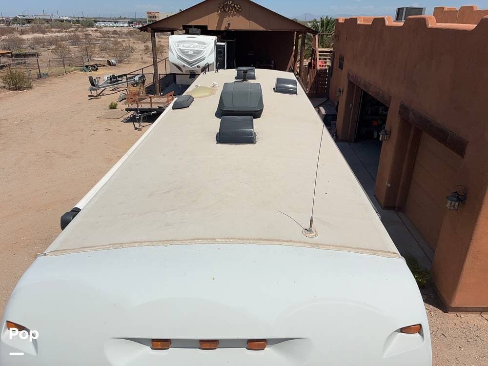 For convenience, you'll find hydraulic leveling jacks, an Onan 4,000-watt generator, a large pass-through storage bay, and a power awning with LED lighting. Built on the proven Ford F-53 chassis with the Triton V10, it delivers 362 horsepower and a 5,000-lb towing capacity -- plenty of power for your travels.