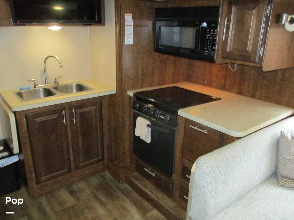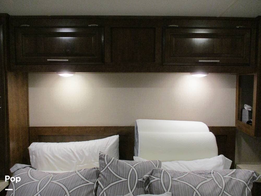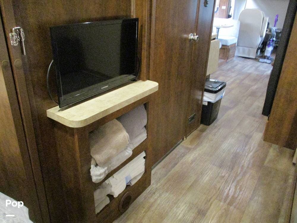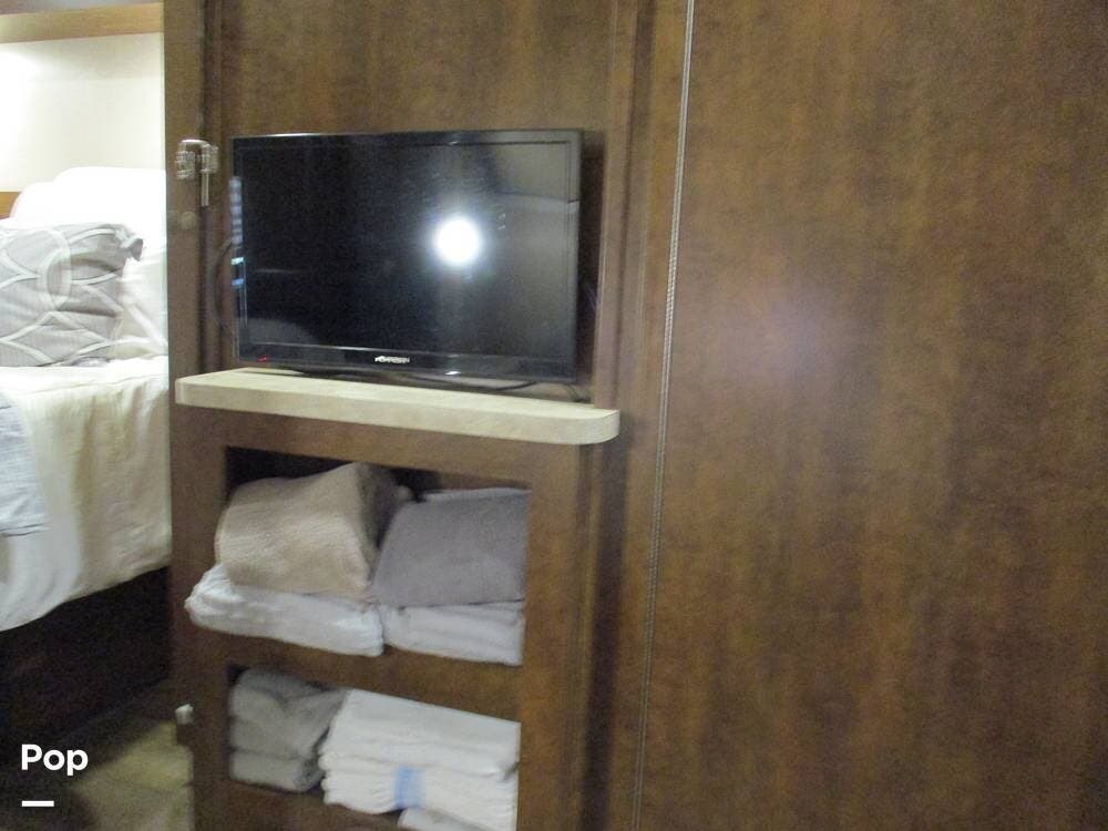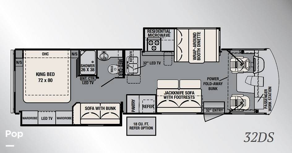 A power bunk is above the cab area for additional sleeping space when needed. Relax and enjoy the large flat screen TV.