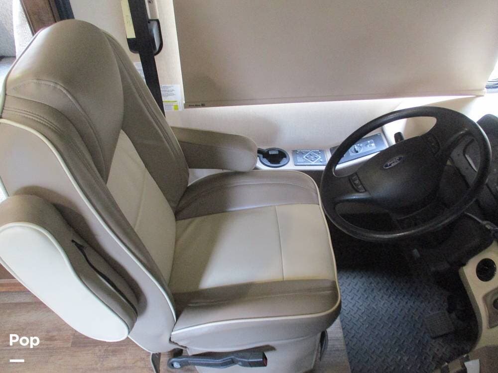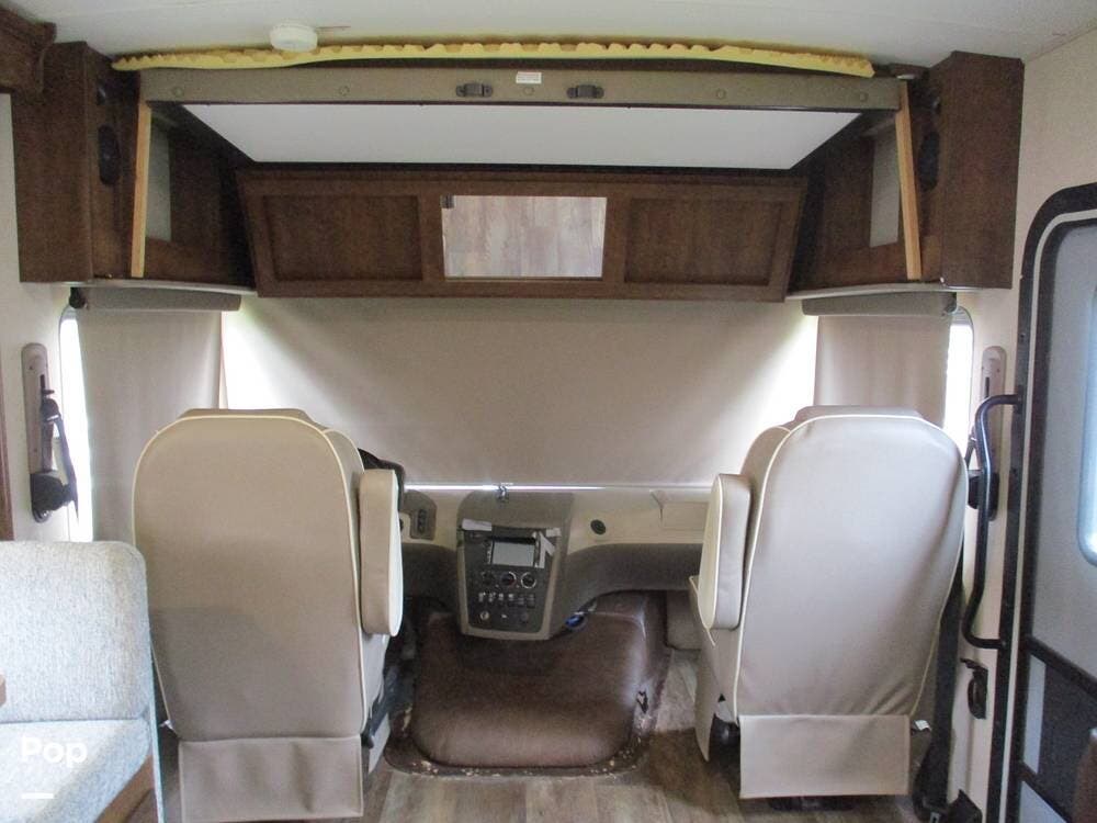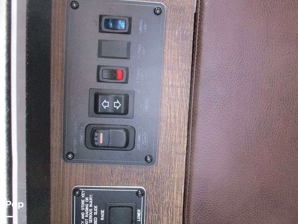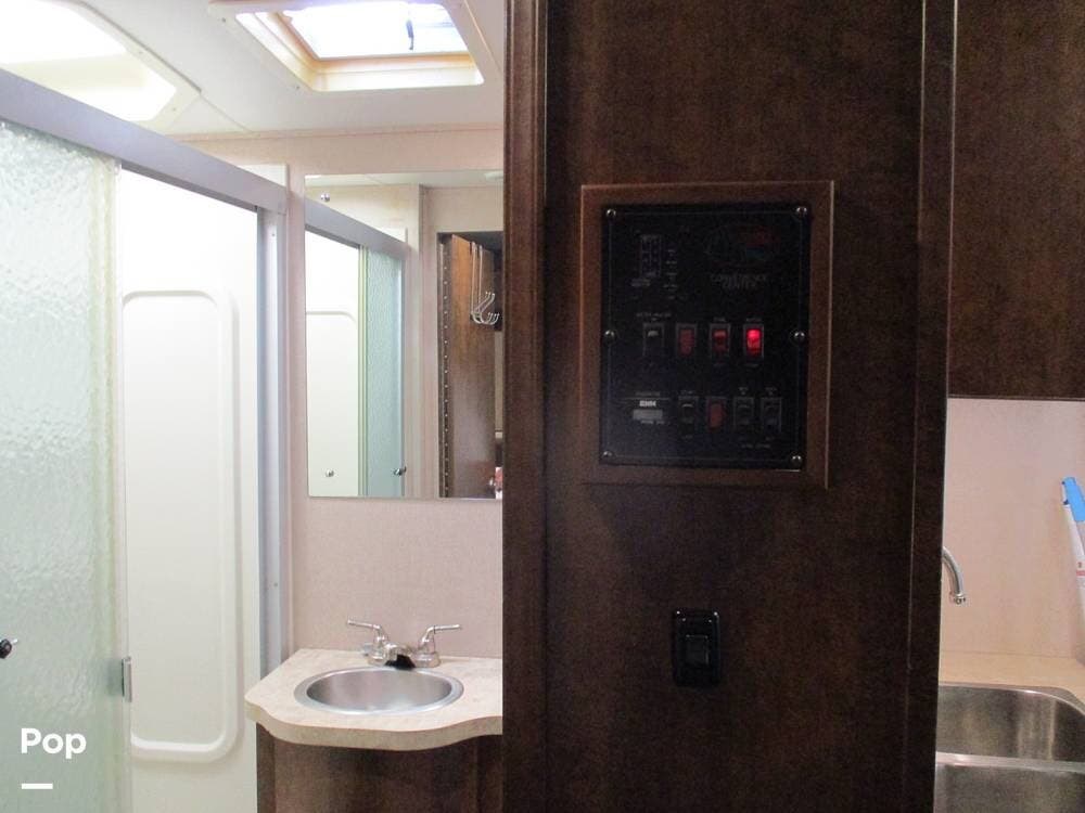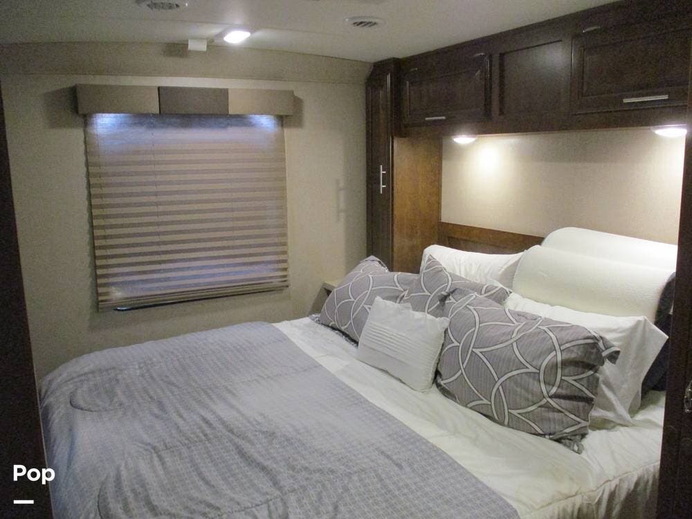 A power bunk is above the cab area for additional sleeping space when needed. Relax and enjoy the large flat screen TV.