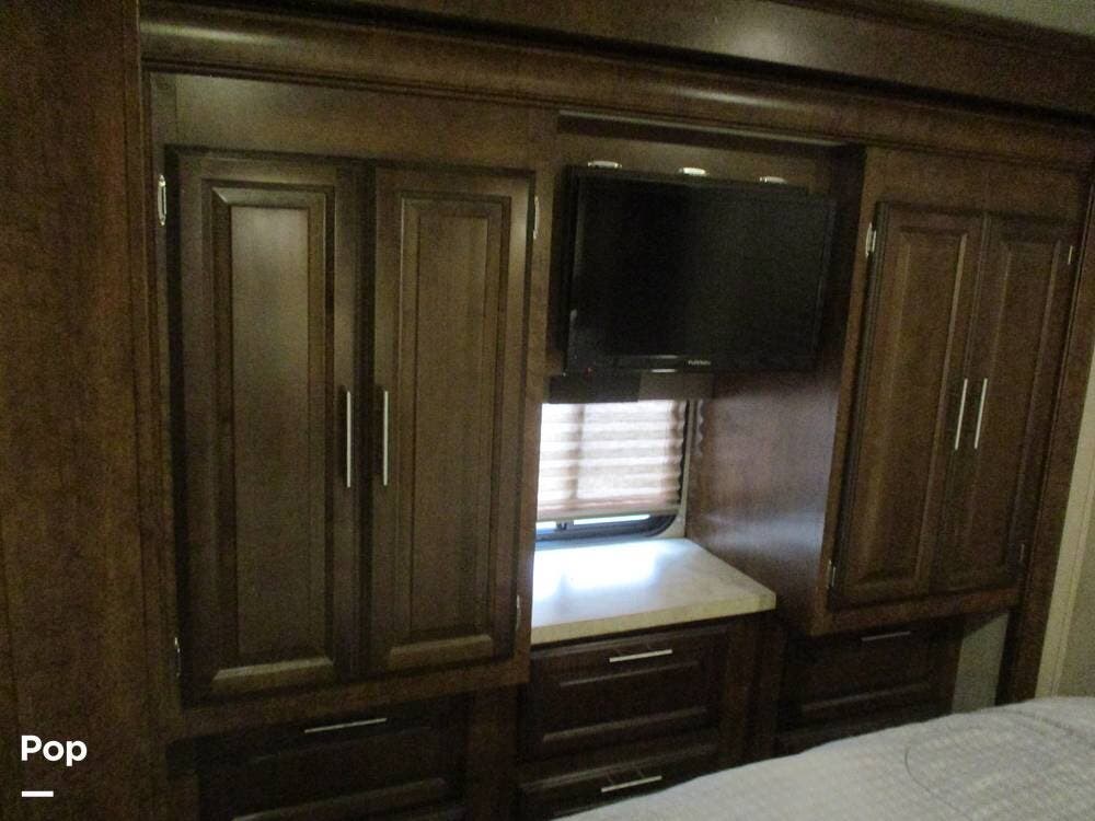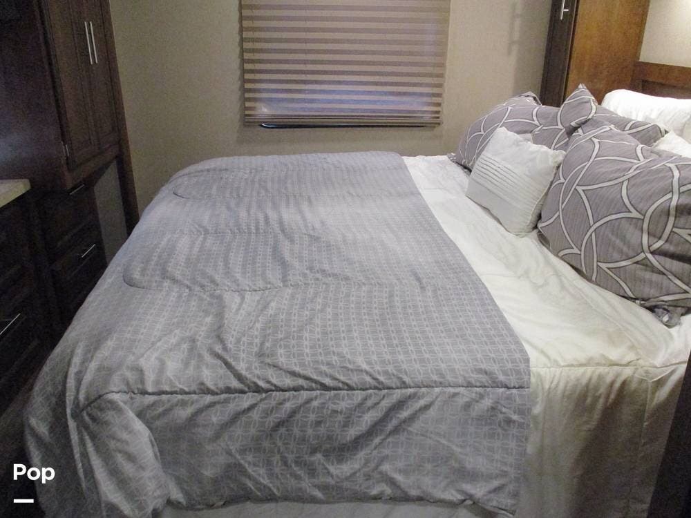 The rear bedroom features a walk-around king bed with nightstands on each side and cabinet storage above. Across is wardrobe and dresser storage. Relax and enjoy the large flat-screen TV.