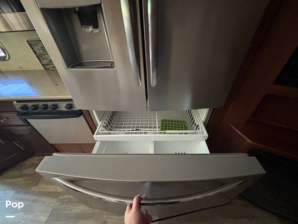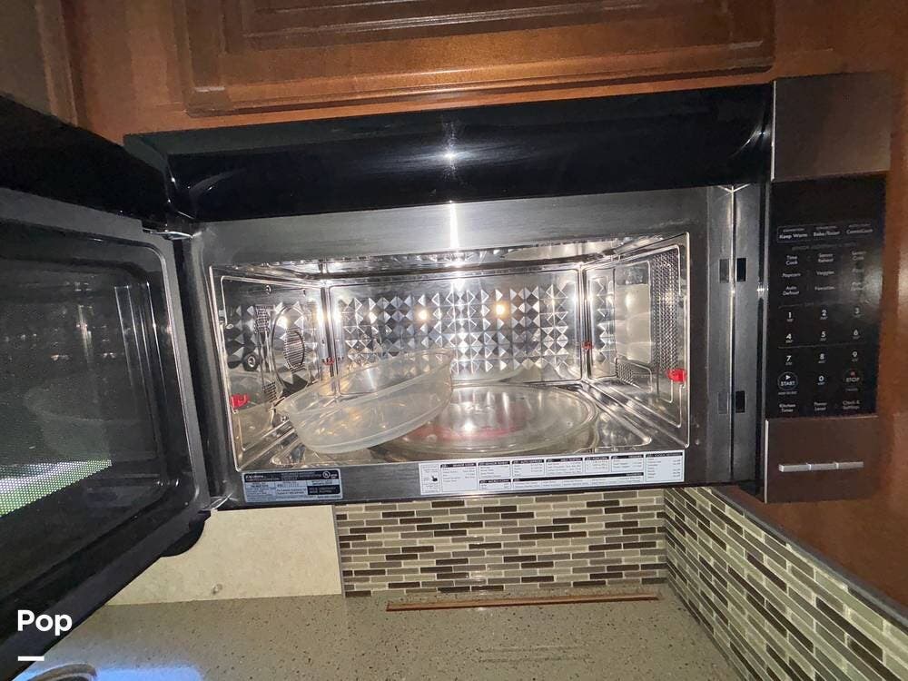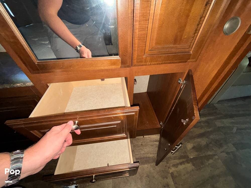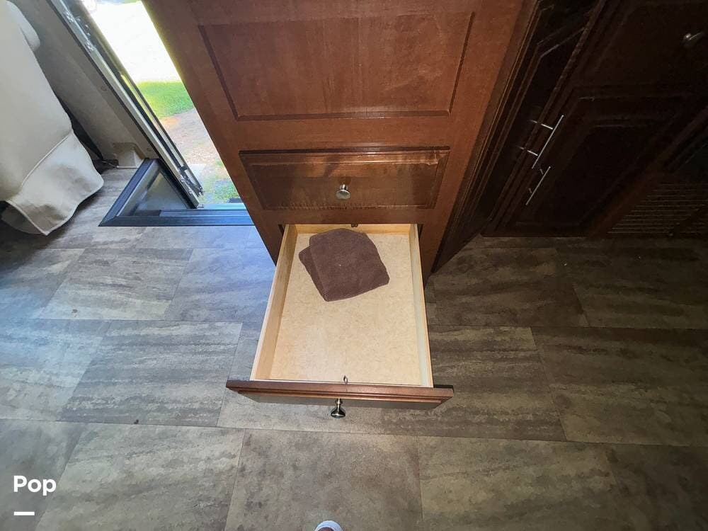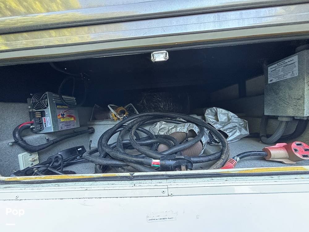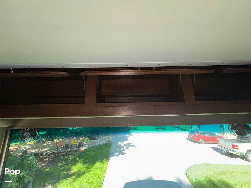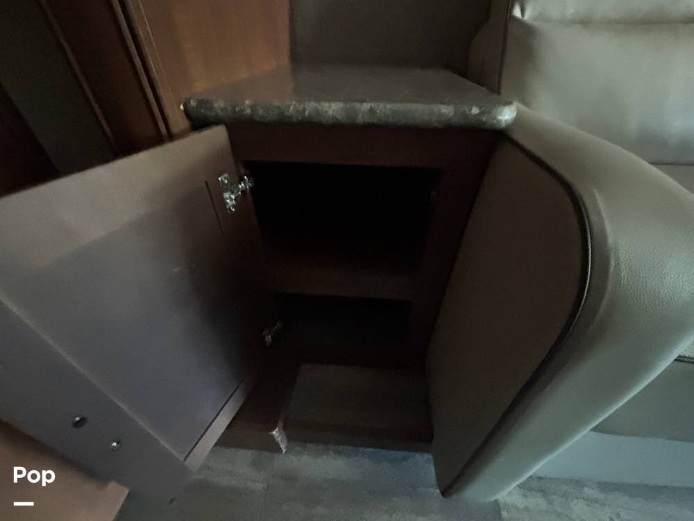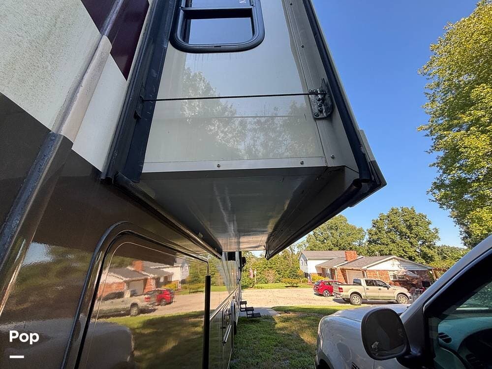 The exterior is designed with generous storage compartments, providing ample space to carry your travel gear. A large power awning extends to create shade for outdoor relaxation, while exterior lighting makes evenings outside more enjoyable. This coach also includes convenient access points for hookups, making setup at campsites straightforward.