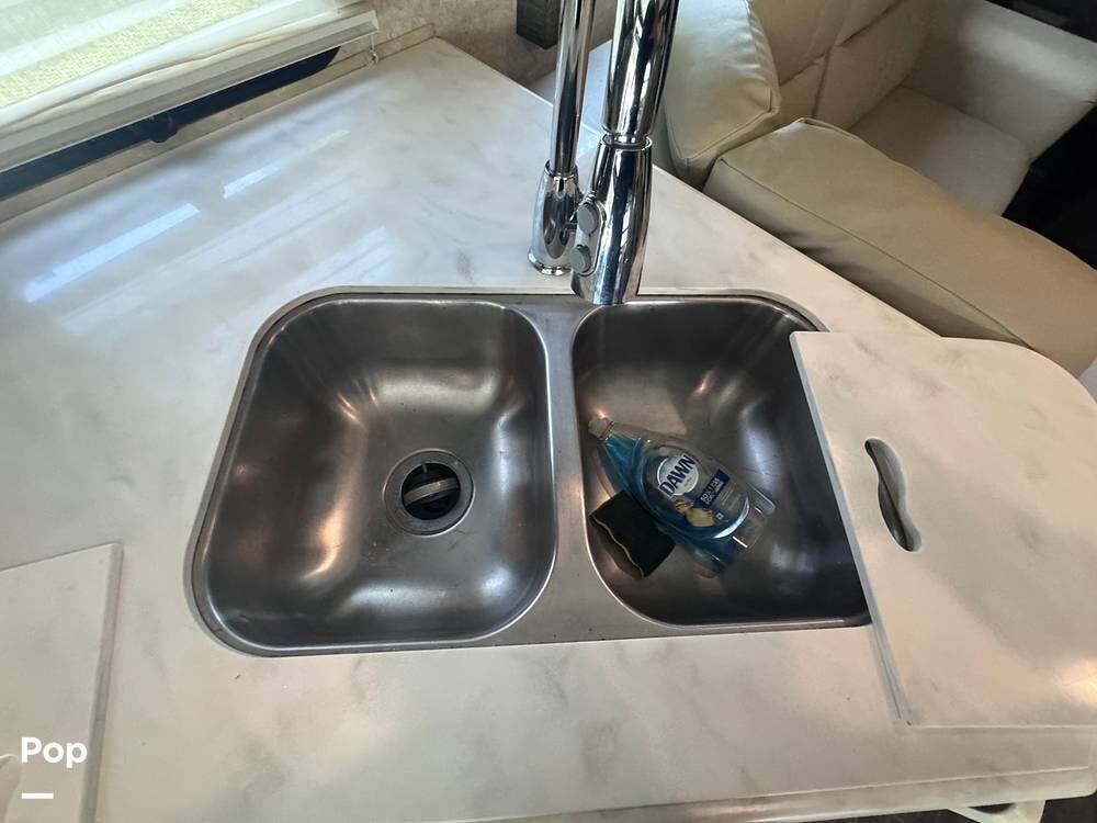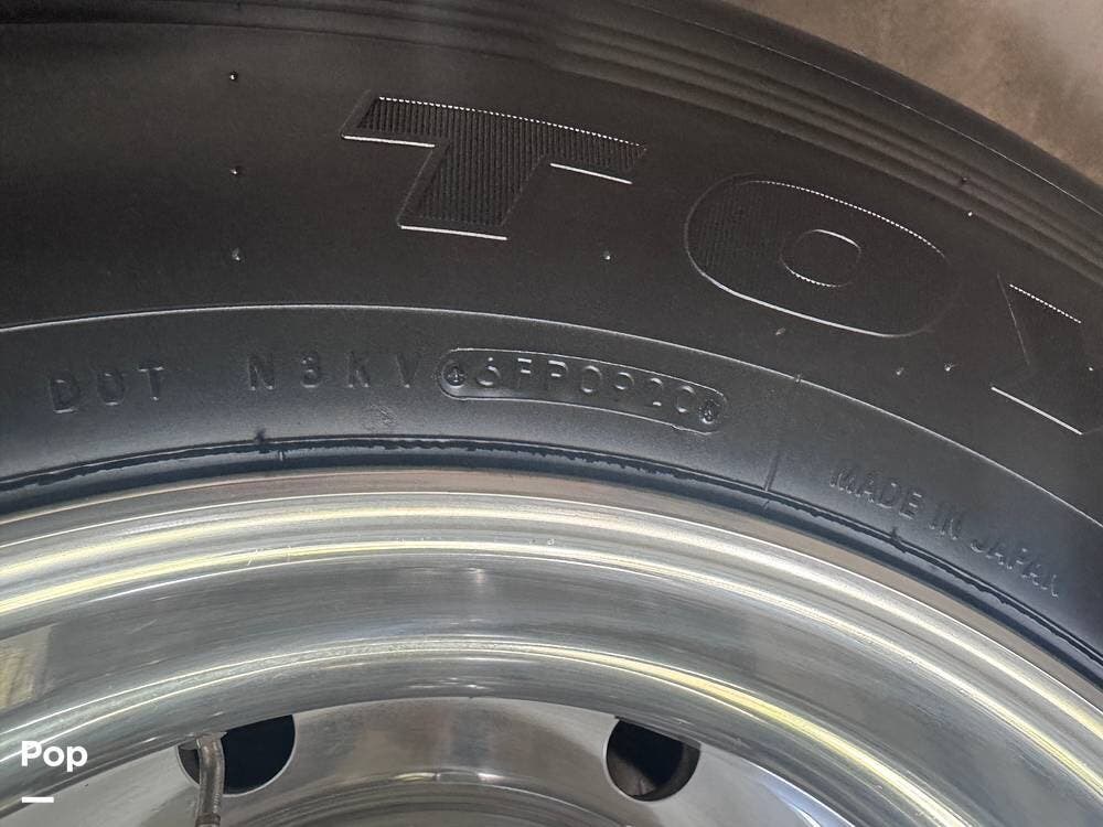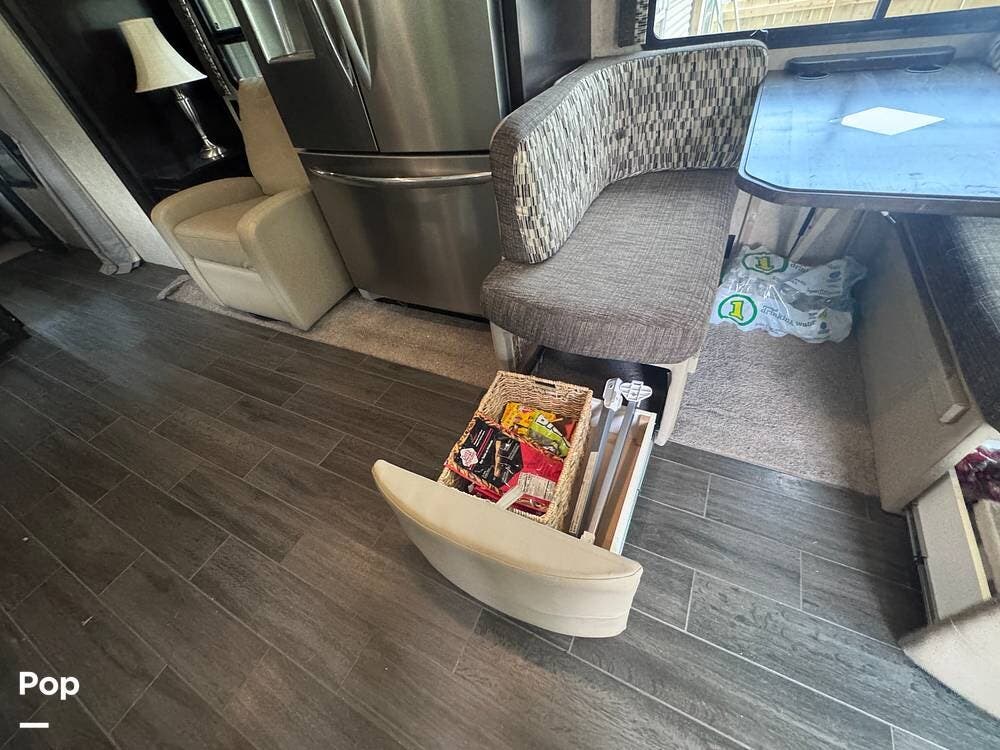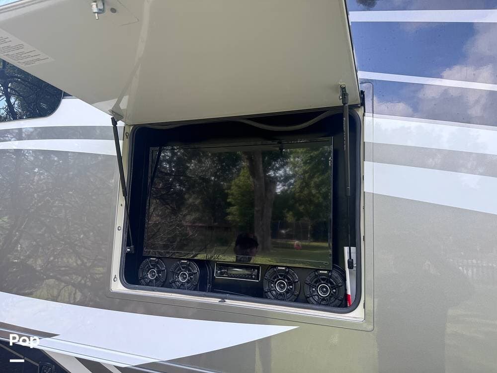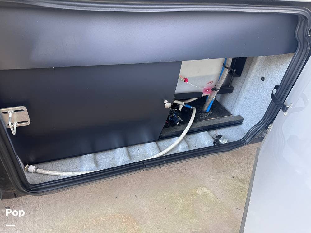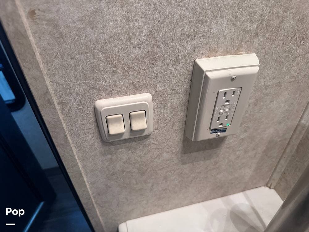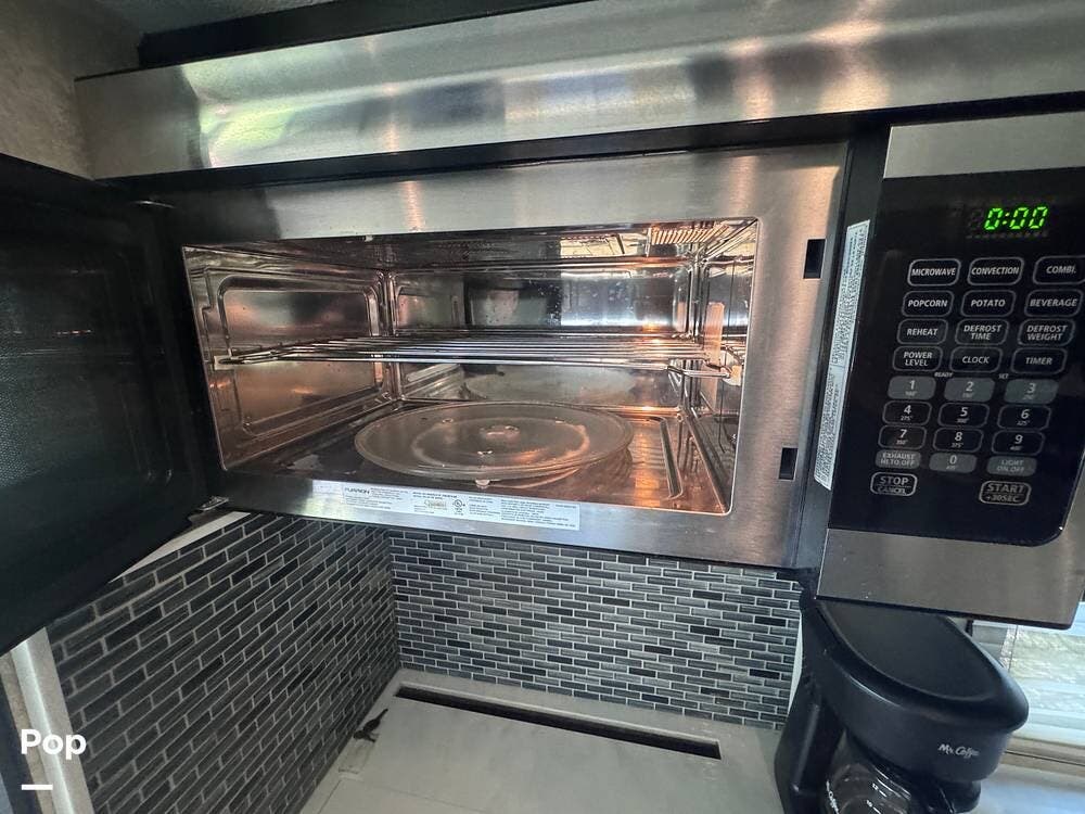 Inside, the living area is designed for comfort and entertainment. The current owner installed a second 15,000 BTU non-ducted air conditioner in the front, bringing the total to an impressive 43,500 BTUs, ensuring cool comfort even in the hottest climates.