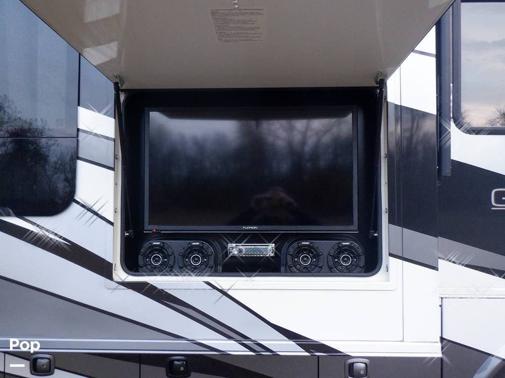 On the outside, you have a great entertainment center and awnings that will keep the sun off you.