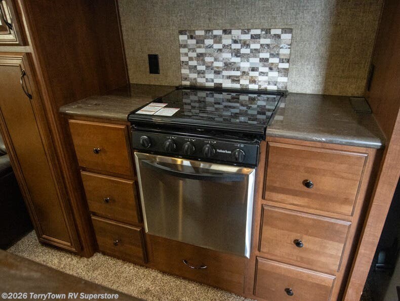 There are plenty of overhead cabinets throughout the fifth wheel, as well as a large pass thru storage. Outside you will enjoy the exterior kitchen as well as a bumper mount swivel gas grill, and more!