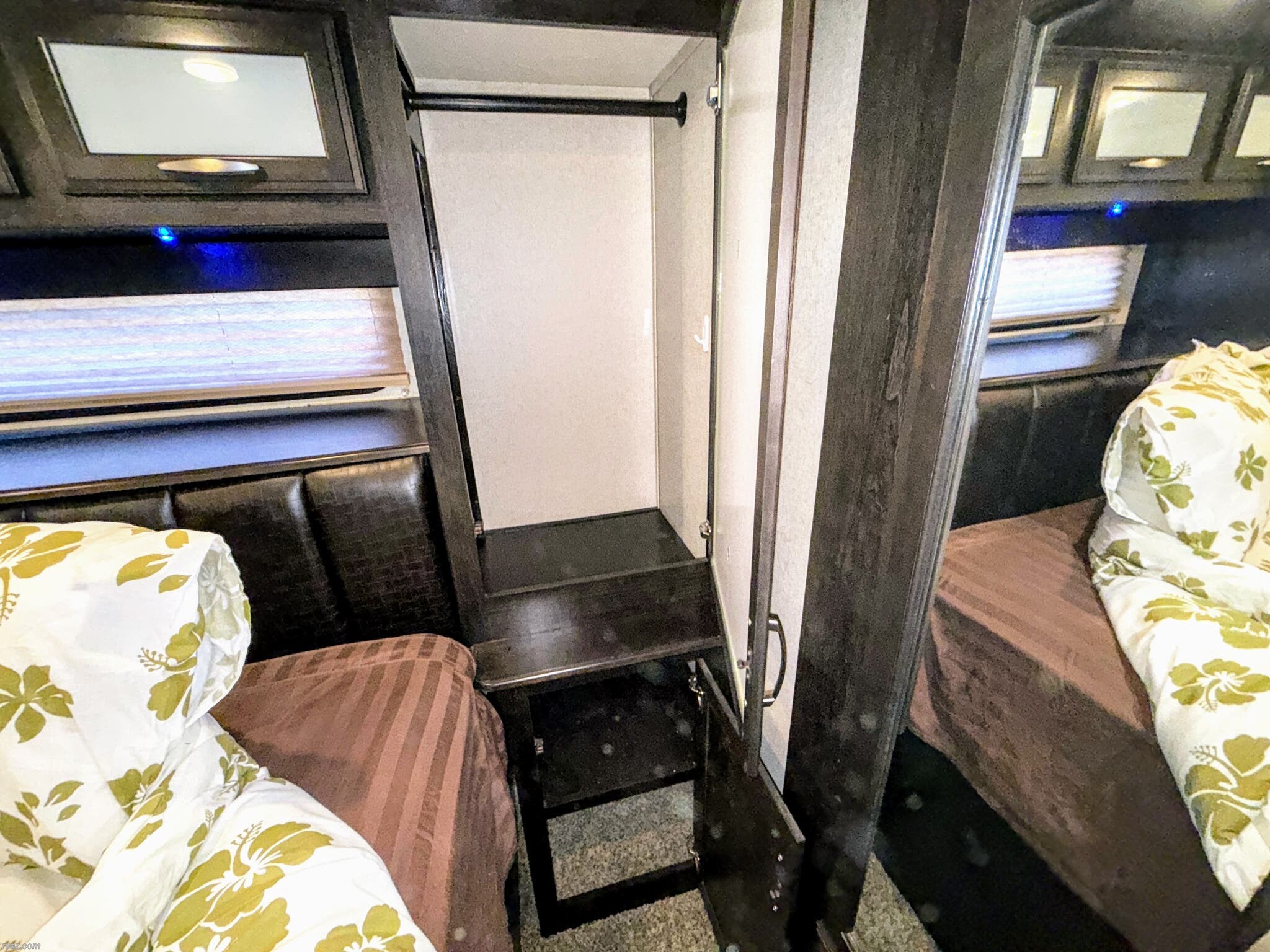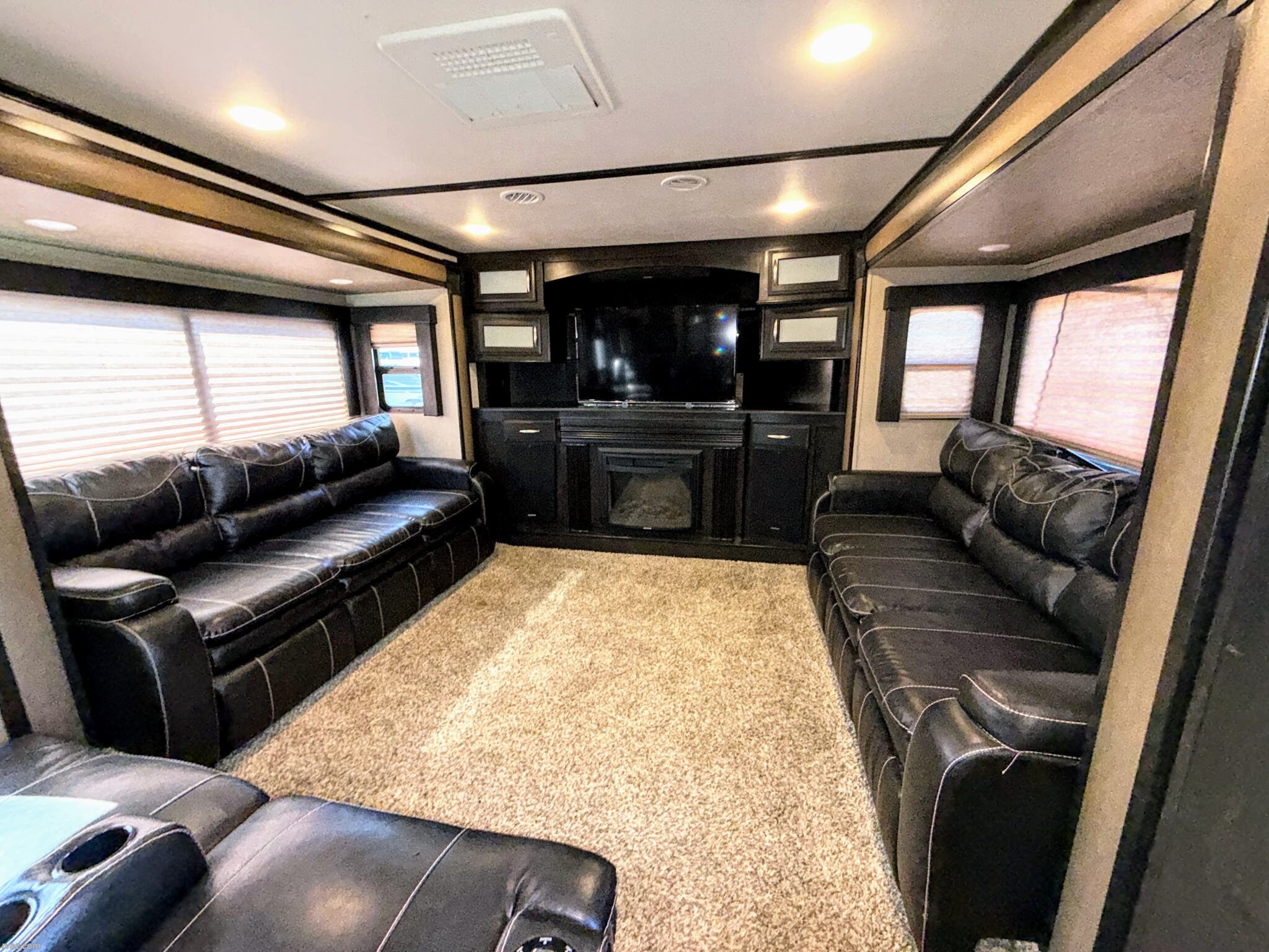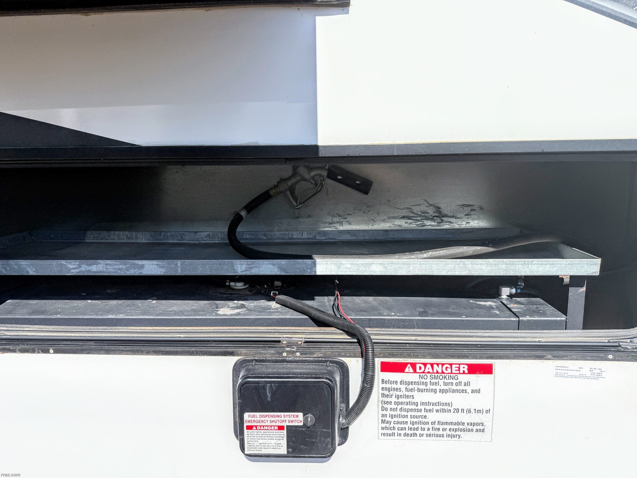 Central Vacuum, Day/Night Shades, Fireplace, Free Standing Dinette w/Chairs, Glass Shower Door, Kitchen Sink, Leather Furniture, Medicine Cabinet, Non-Smoking Unit, Overhead Cabinetry, Queen Bed, Rocker Recliner(s), Roof Vents, Self Contained, Shower, Toilet, Washer/Dryer Prep -