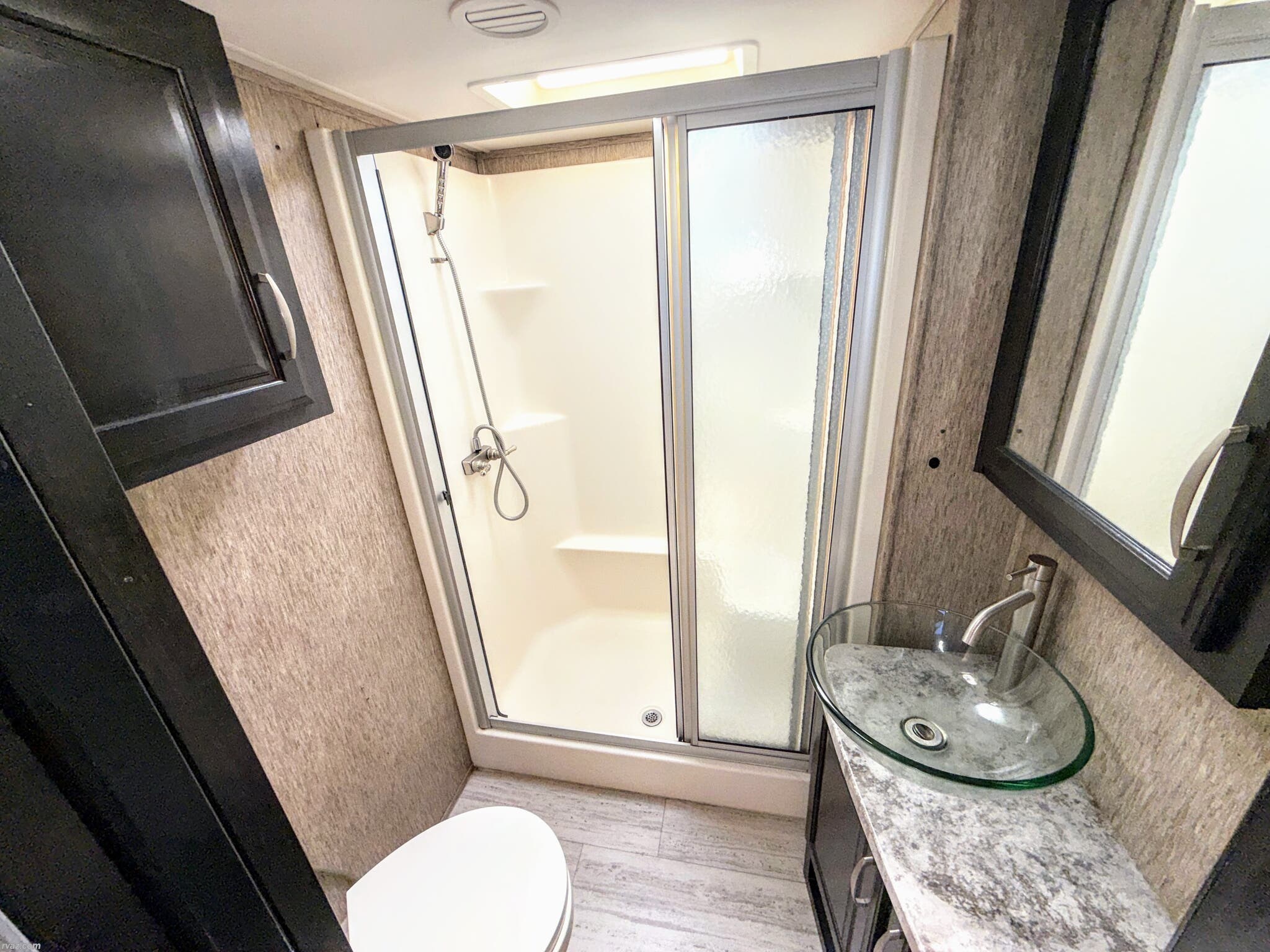 - Additional features include a medicine cabinet, roof vents, skylight, and a power roof vent for excellent airflow