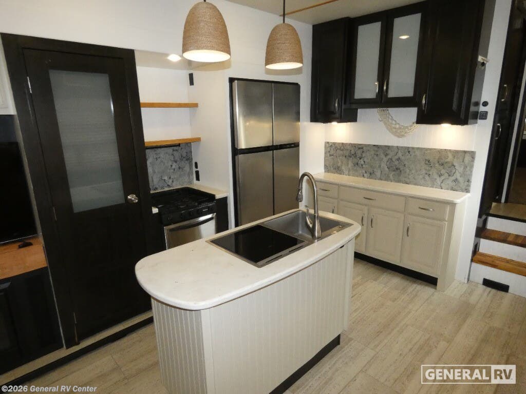 Step into the world of luxurious adventure with the 2016 Grand Design Momentum 380TH. This impressive toy hauler is designed for those who crave the perfect blend of comfort and functionality. With a generous length of over 42 feet and a height of 13.5 feet, the Momentum offers ample space for both relaxation and entertainment. The heart of this RV is its center kitchen, equipped with a full-size refrigerator and a three-burner cooktop, making meal prep a breeze. The Momentum 380TH comfortably sleeps up to four people, thanks to its queen bed and a convertible sleeping area. The front bedroom is a sanctuary with a walk-in closet and washer/dryer setup, ensuring you have all the comforts of home on the road. The 10’2” garage space is perfect for storing your toys, and with two powered retractable awnings, you can enjoy the great outdoors in style. Whether you're heading to the mountains or the coast, this RV is your ticket to unforgettable journeys. For more details, visit your nearest General RV dealership.