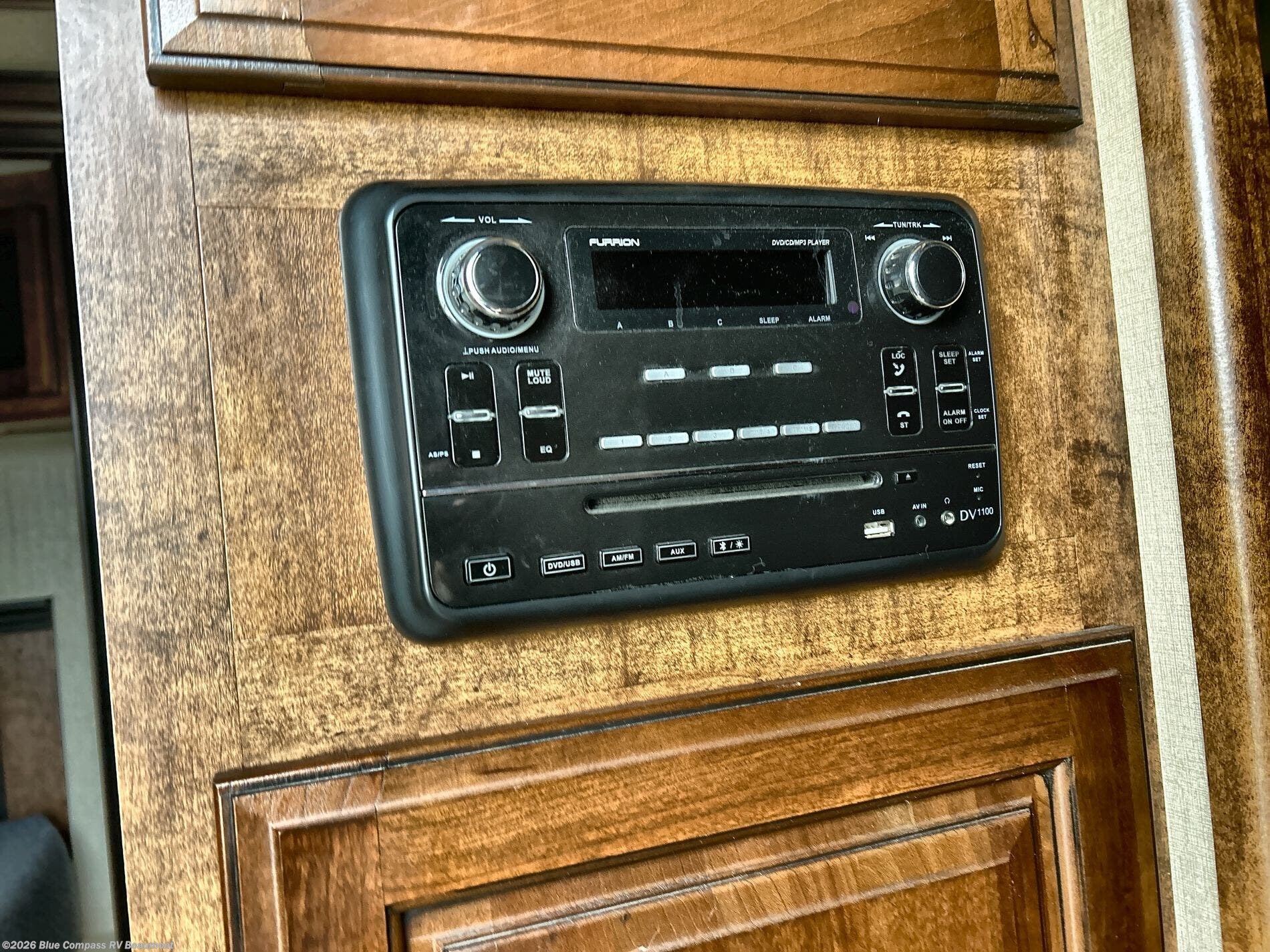 The front living area also features dual slides with two 80" tri-fold sofas. There is a 58" theater sofa to the left as you enter the living space and a 50" LED HDTV at the front of the room with fireplace below. The perfect space for entertaining guests and enjoying a conversation with family and friends.