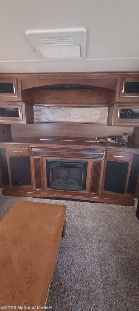 The front living area also features dual slides with two 80" tri-fold sofas. There is a 58" theater sofa to the left as you enter the living space and a 50" LED HDTV at the front of the room with fireplace below. The perfect space for entertaining guests and enjoying a conversation with family and friends.