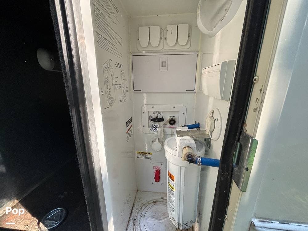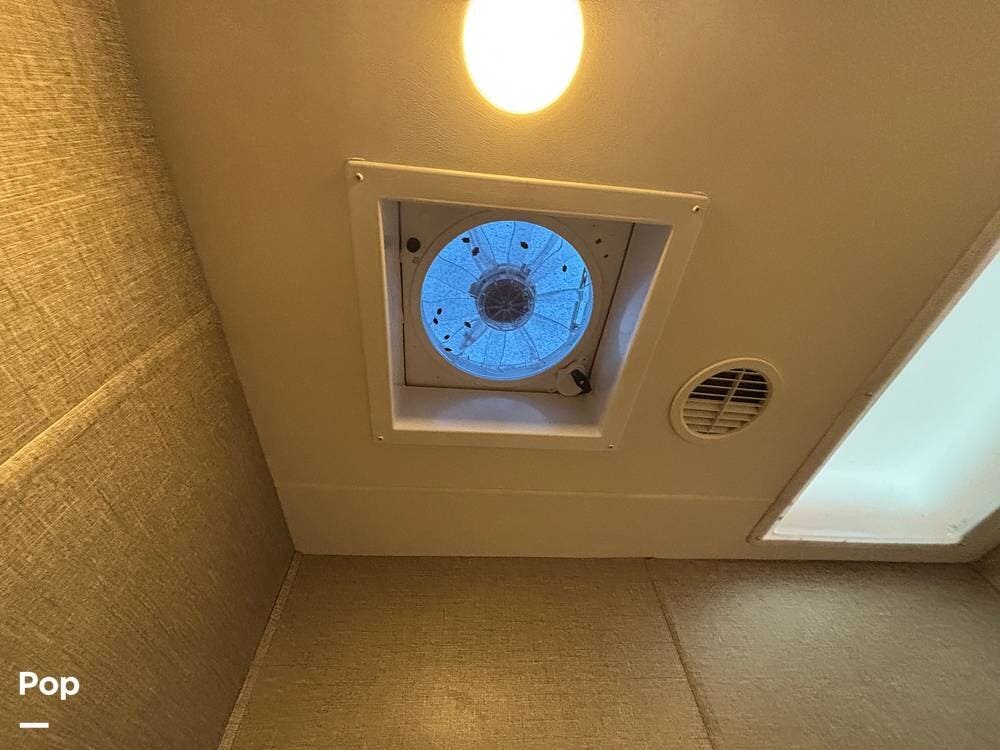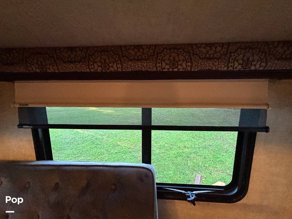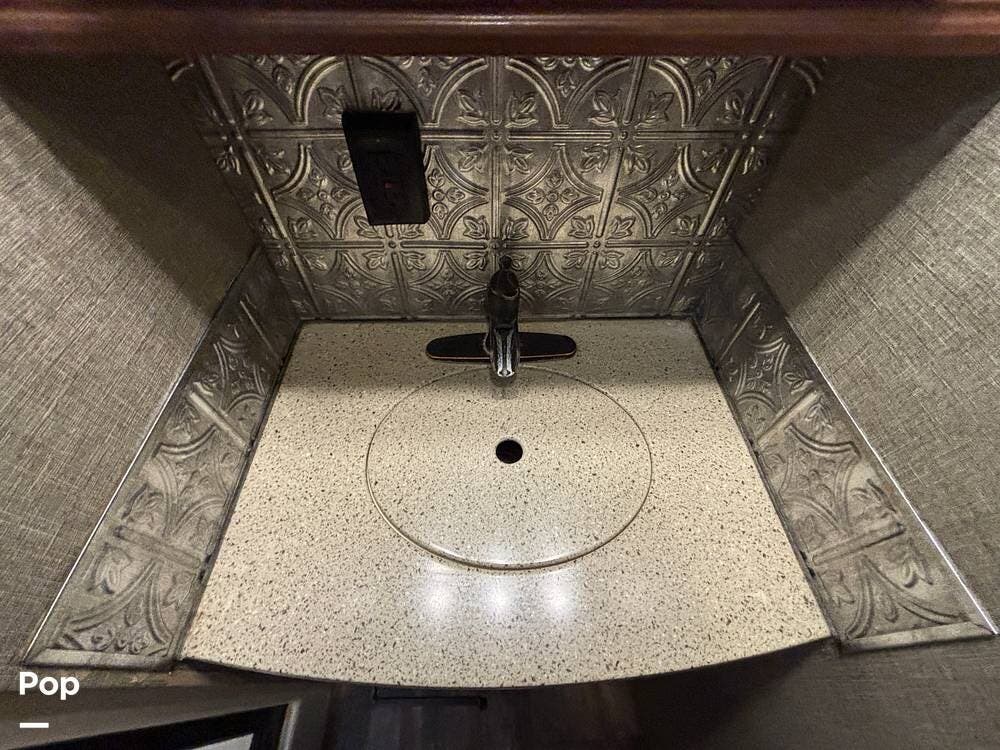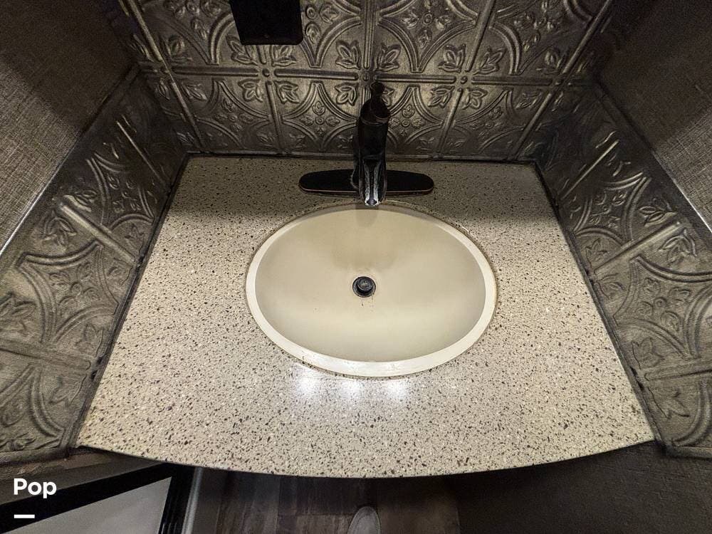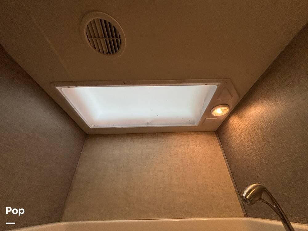The bathroom is located off the hallway and features a large residential-style shower with a glass enclosure, a porcelain foot-flush toilet, and a solid surface vanity with a mirrored medicine cabinet. Blending durability, warmth, and open-concept living, this 2017 Bighorn 3750FL has been thoughtfully updated for comfort, versatility, and all-season performance--ready to be enjoyed on your next adventure.