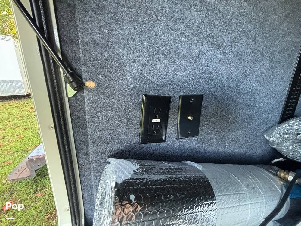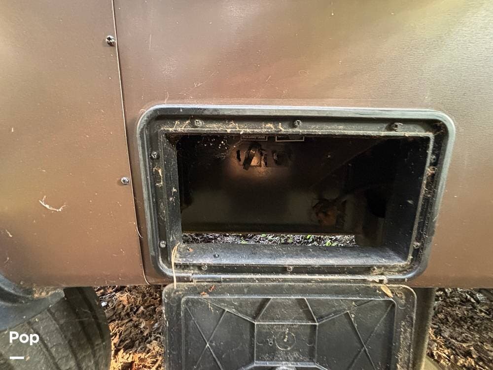A single power awning extends to create a comfortable outdoor space, and the custom skirting around the lower body adds insulation for cold-weather camping while creating a convenient enclosed "garage" area beneath the gooseneck--perfect for extra storage or protecting gear from the elements. Frameless windows, solid entry steps, and generous basement storage complete the exterior package, offering both practicality and style.