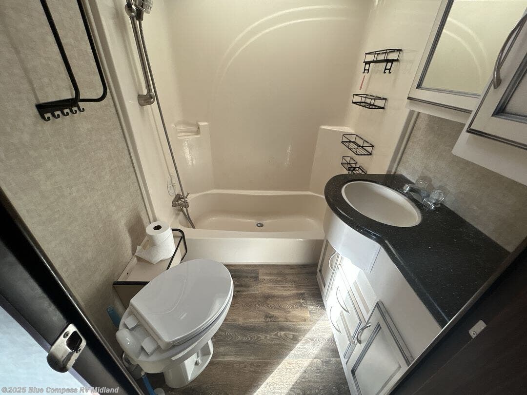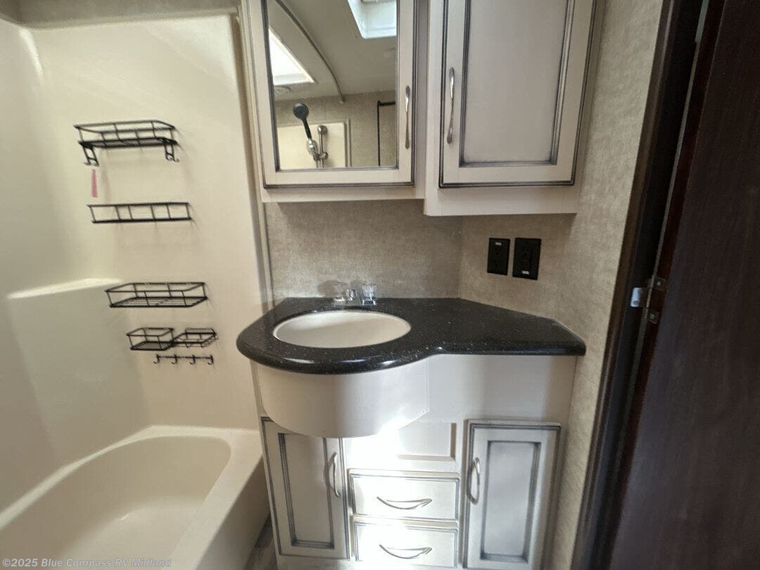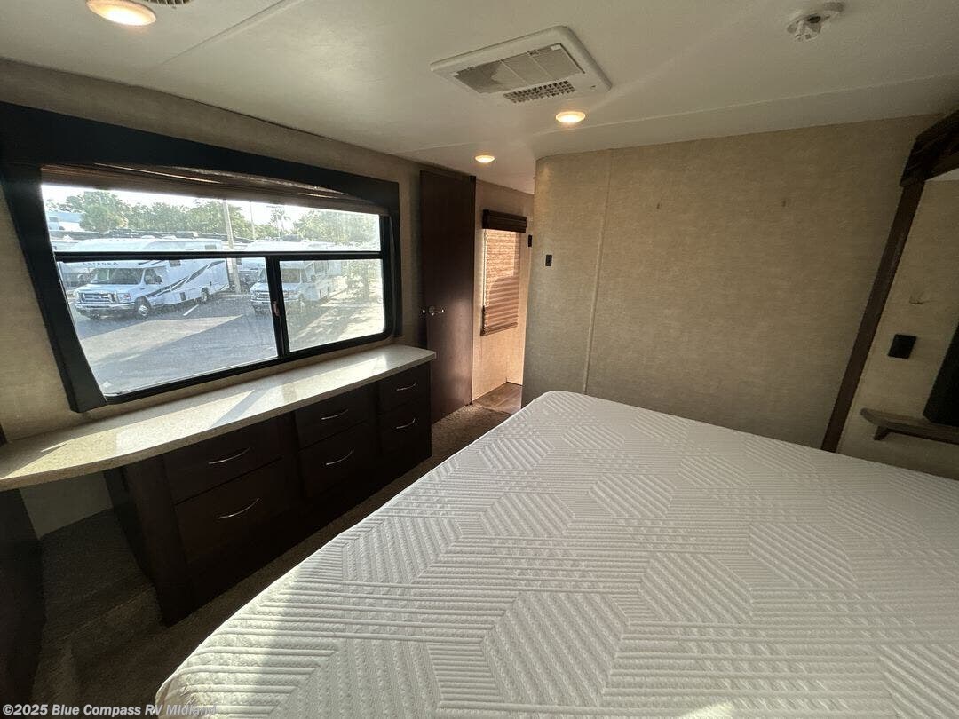The front private bedroom offers a king bed slide, dresser opposite the bed, and a front wardrobe with sliding doors, and closet that has been prepped for a washer and dryer, plus so much more! There is even a LCD TV which slides in and out of the wall for your convenience.