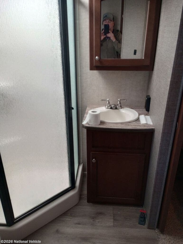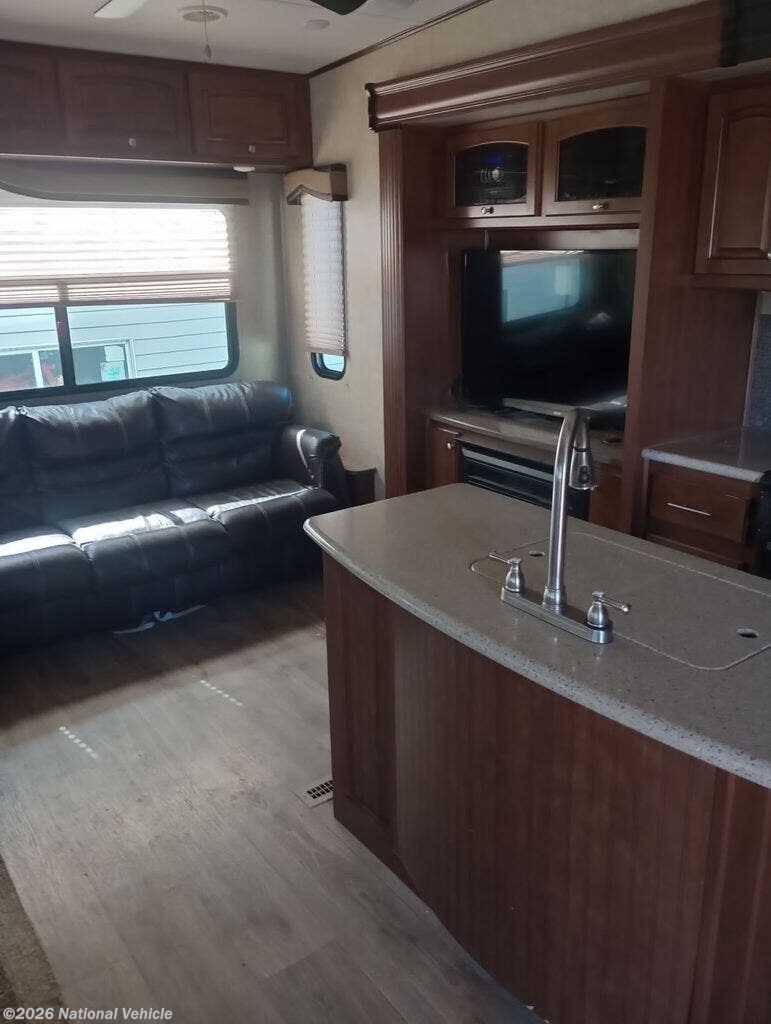 From the moment you enter, you?re greeted by a wide-open living area featuring plush theater seating, a large sleeper sofa, and an entertainment center with fireplace and TV?creating a true home-away-from-home vibe. A second TV adds extra convenience, perfect for the bedroom or bunk area so everyone can enjoy their own space. The kitchen is equally impressive, outfitted with solid-surface countertops, a center island, residential-style cabinetry, a full-size refrigerator, and a three-burner range with oven. Whether you?re cooking for two or hosting a crowd, this space is built to perform.