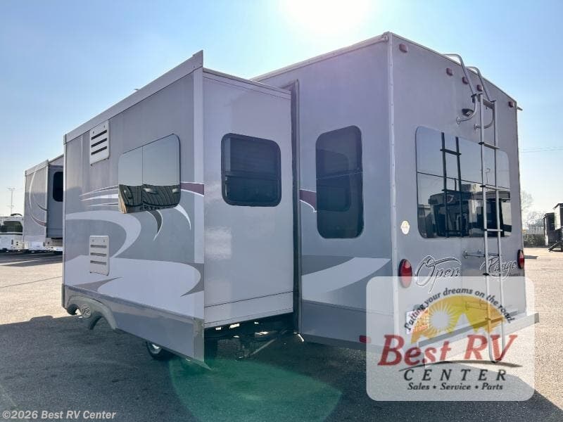 Triple slides and a rear living layout are featured in this Open Range Roamer fifth wheel model 337RLS.