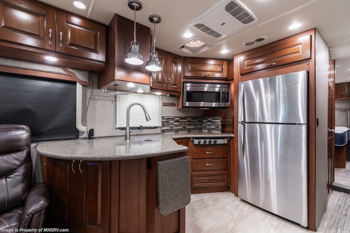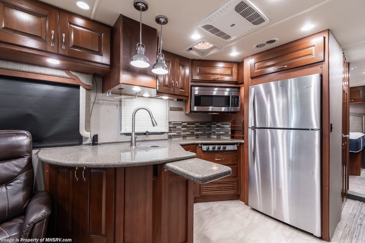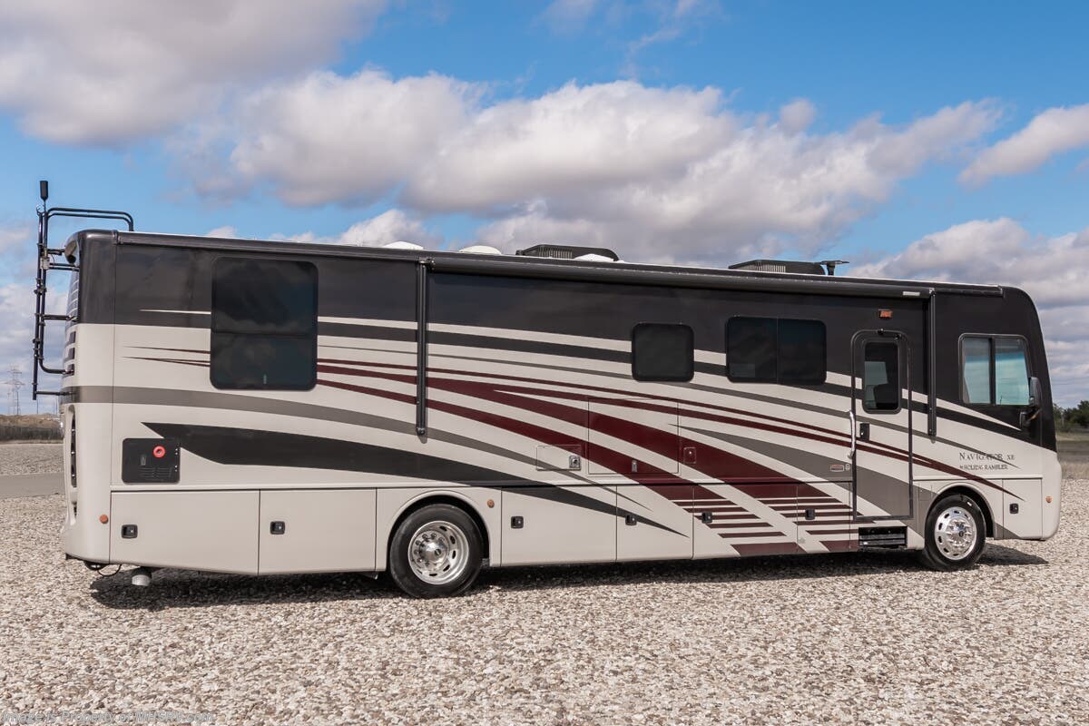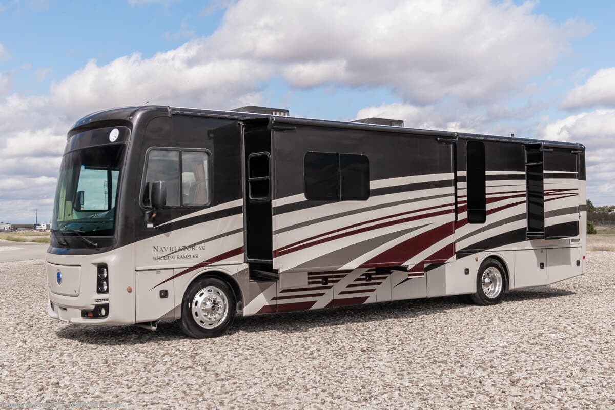 Used Holiday Rambler RV for sale – 2016 Holiday Rambler Navigator XE 35B is approximately 36’ 9” in length with 67,829 Miles, 2 slides and features 3 camera system, diesel generator, tilt steering wheel, secondary engine brake, tire monitoring system, power visor, keyless entry, water manifold, patio awning, cargo tray, pass through storage, side swing storage doors, LED running lights, docking lights, water filtration system, exterior shower, exterior TV, ladder, air ride, leather seating, 7 foot ceiling, hardwood cabinets, convection microwave, residential refrigerator with ice maker, 3 burner gas range, overhead loft and much more. For additional details on this unit and our entire inventory including brochures, window sticker, videos, photos, reviews & testimonials as well as additional information about Motor Home Specialist and our manufacturers please visit us at or call 800-335-6054 for our Texas location or 334-288-0331 for our Alabama location. At Motor Home Specialist, we DO NOT charge any prep or orientation fees like you will find at other dealerships. Read Thousands upon Thousands of 5-Star Reviews at and See What They Had to Say About Their Experience at Motor Home Specialist.