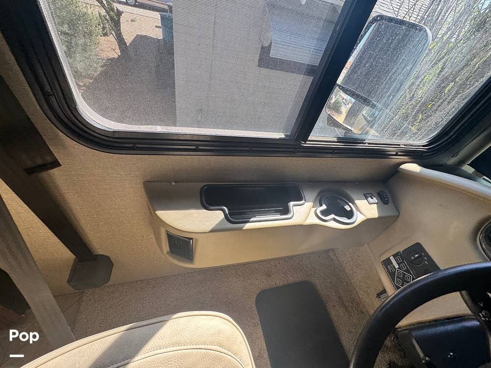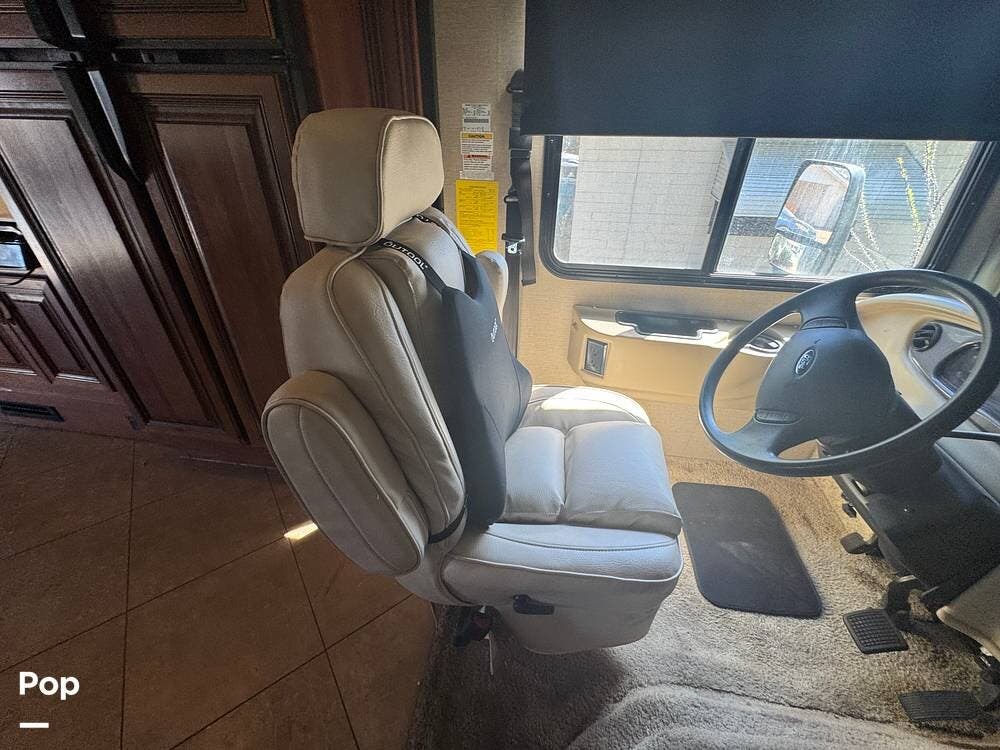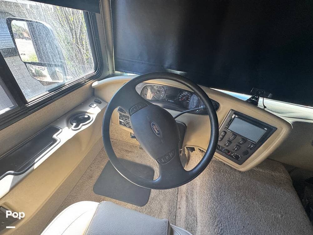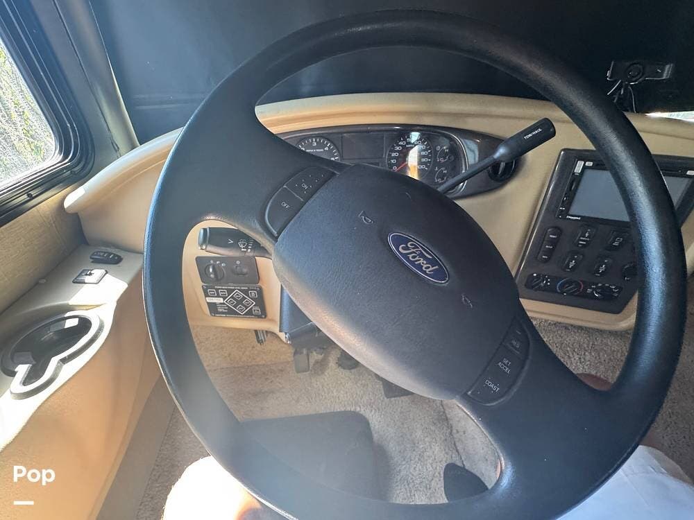 From the outside, the 36DB carries the familiar presence of a full-size Class A: tall, broad, and confident without being overly imposing. Built on a Ford F-53 chassis and powered by a Ford Triton V10 engine, it has a different personality than diesel coaches. There's more engine sound, more direct connection to the road, and a sense that you're actively driving it rather than simply guiding it. It's approachable, dependable, and built for owners who want capability without intimidation.