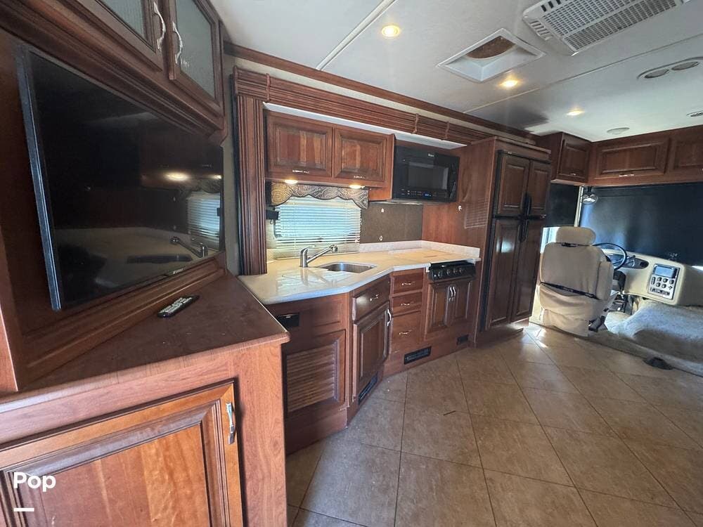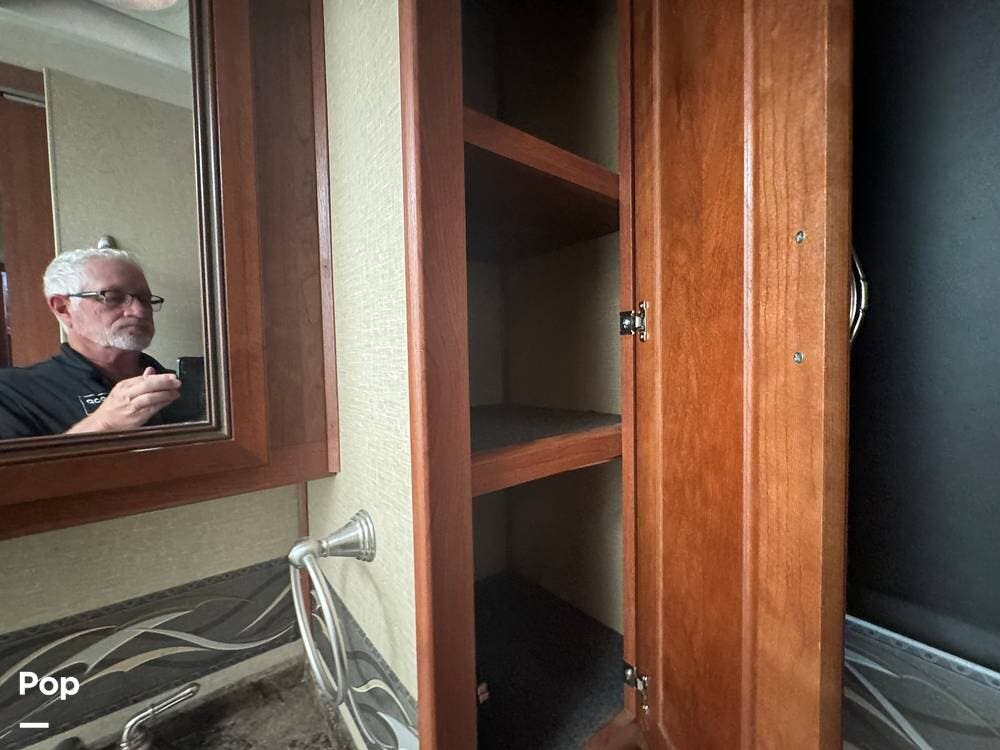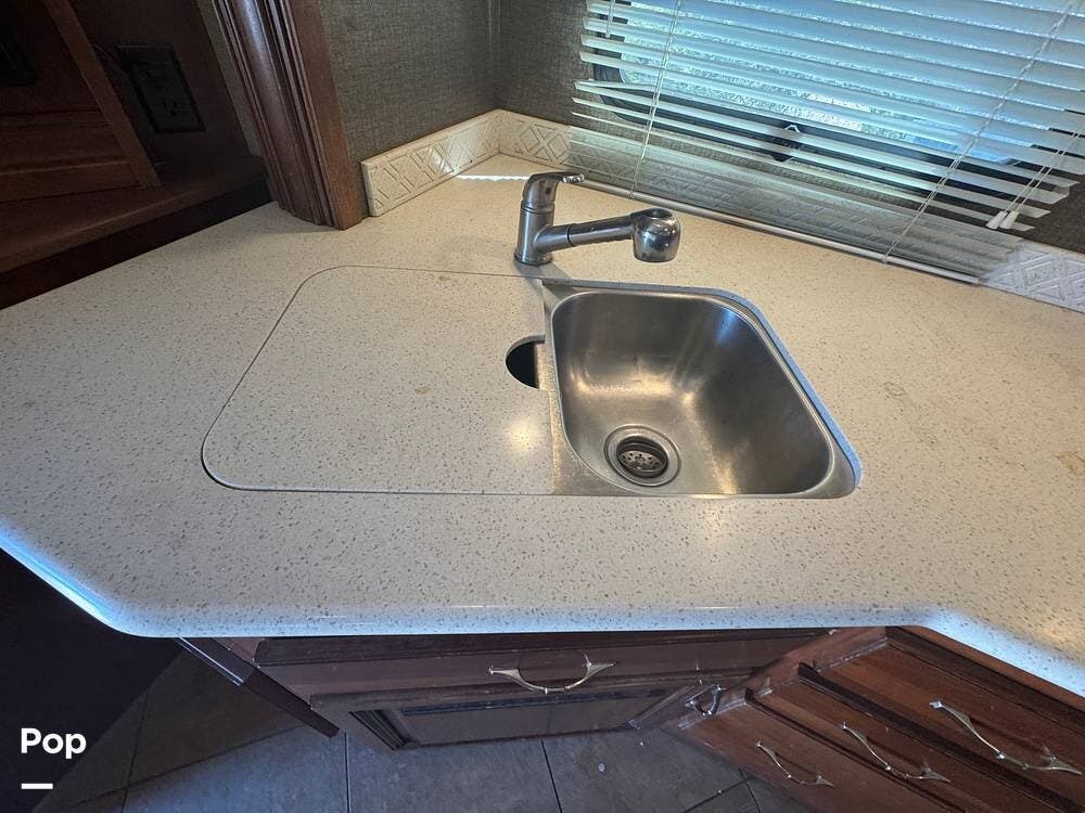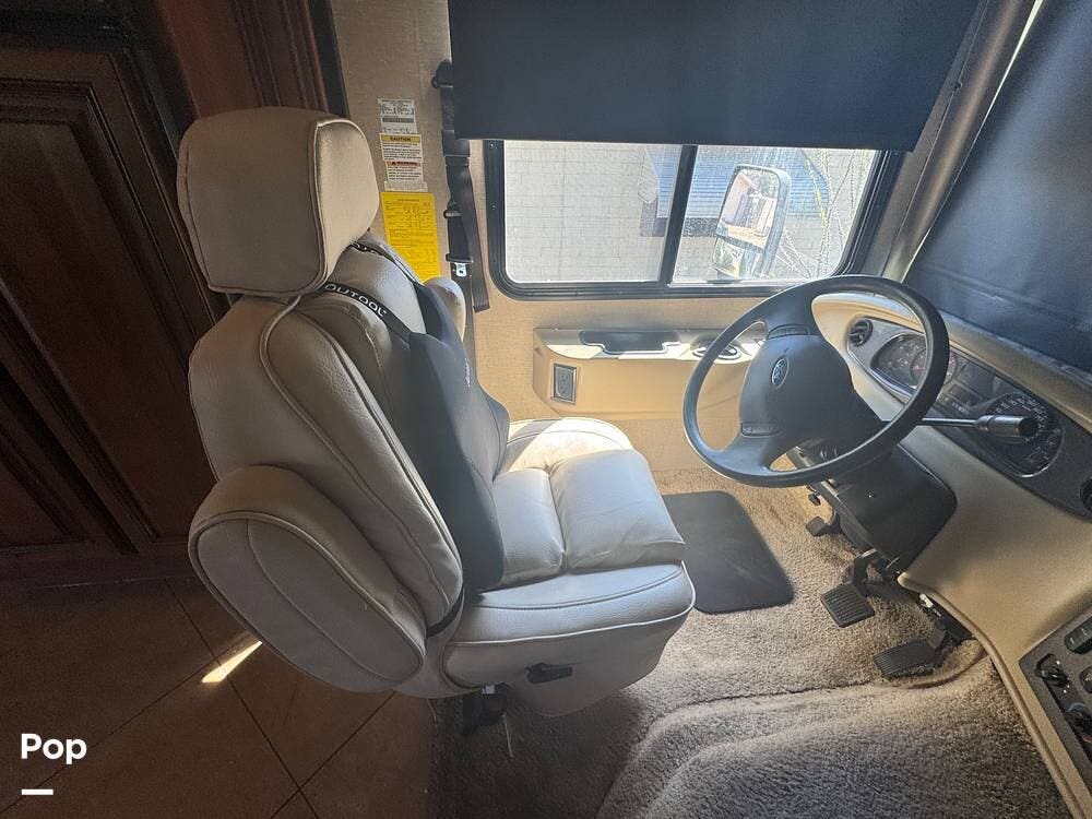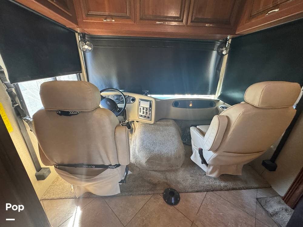 From the outside, the 36DB carries the familiar presence of a full-size Class A: tall, broad, and confident without being overly imposing. Built on a Ford F-53 chassis and powered by a Ford Triton V10 engine, it has a different personality than diesel coaches. There's more engine sound, more direct connection to the road, and a sense that you're actively driving it rather than simply guiding it. It's approachable, dependable, and built for owners who want capability without intimidation.