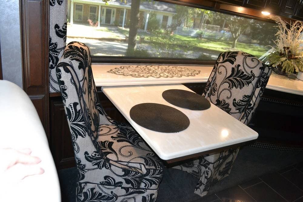 Luxury "Villa" cab seats for driver and front passenger, with 6-way power, heat, massage, power footrests, lumbar support, ability to swivel to become part of the living area when parked.