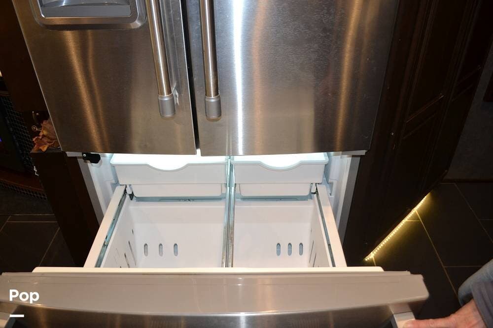 Pass-through large exterior storage; "slide-out trays" for easier access.