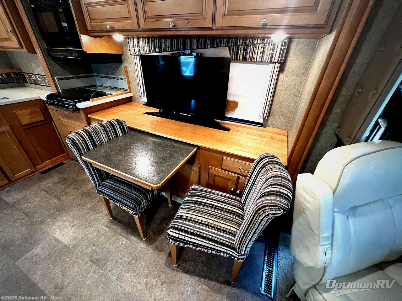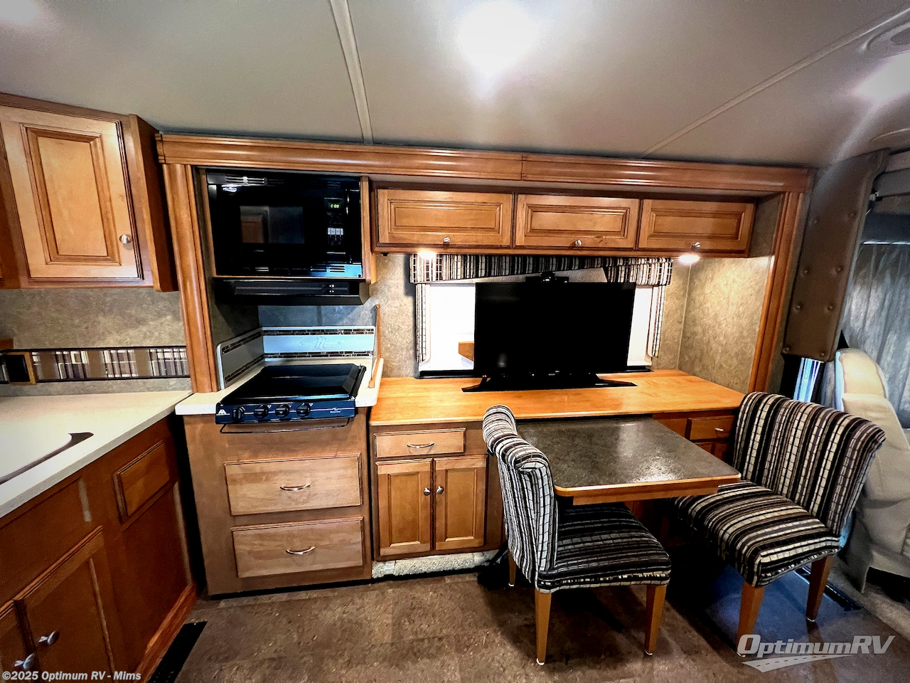 This class A coach features a wide open living area with dual opposing slides just behind the front cab seats that can swivel toward the rear for added seating. The slide to the right of the side entry door features a 48" x 70" sofa bed, or you can choose the 60" x 78" Comfort Sofa Sleeper. On the opposite side there is a slide out three burner range, and 42" x 74" booth dinette with seat belts. You can also select the optional dining table and chairs with buffet featuring a 40" retractable TV, or a BenchMark Dinette instead. A refrigerator is located to the left of the entry door along with a pantry for storage, opposite the dinette slide is a double sink, plus overhead cabinets for all of your dishes and things.