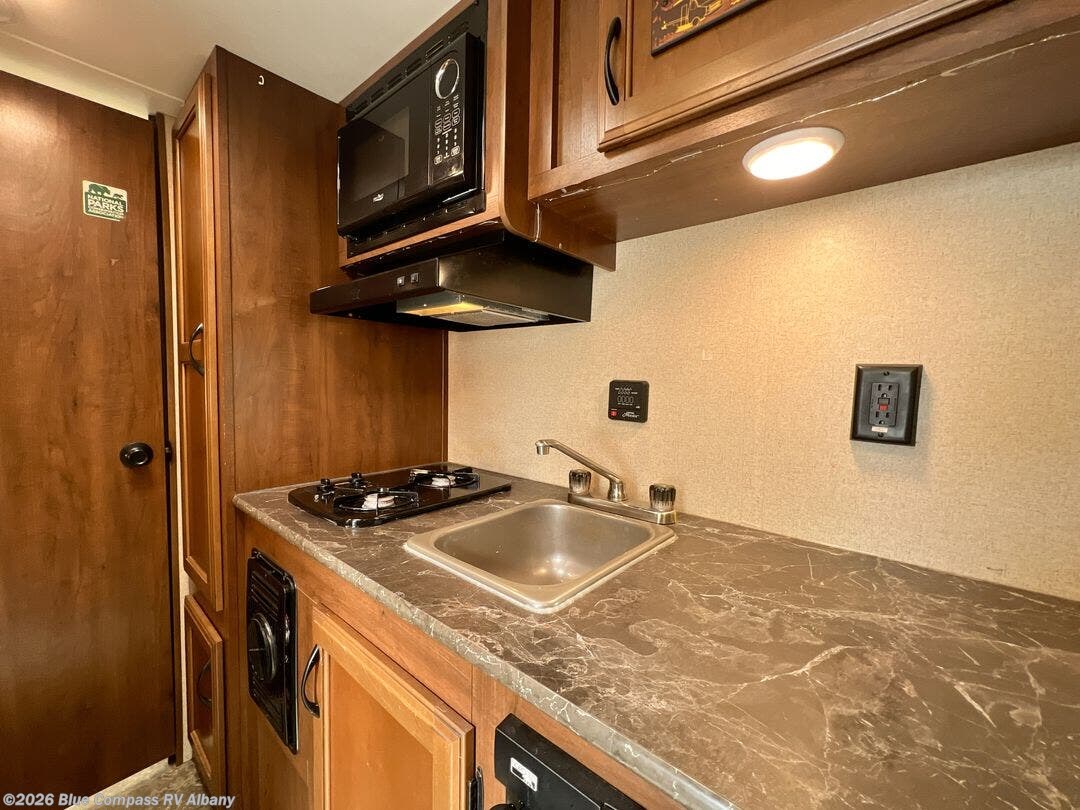 You will also enjoy the overhead cabinets in this travel trailer, plus so much more!