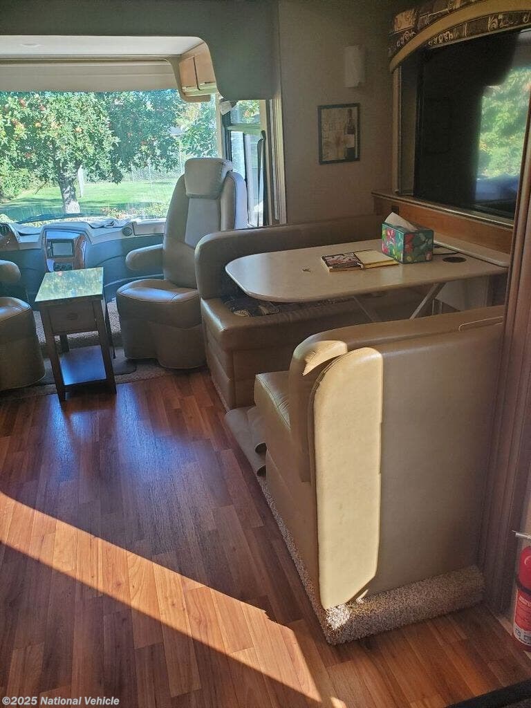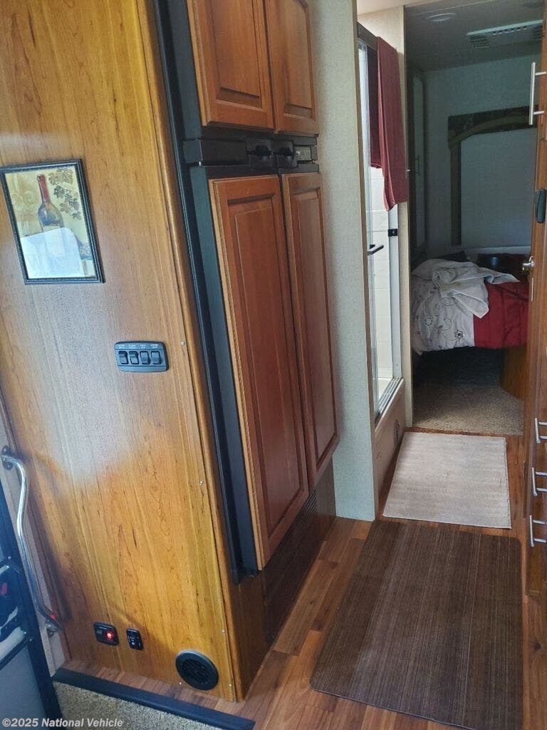 Step inside and enjoy a bright, open floor plan with large windows and high ceilings. The living area includes a sofa sleeper, freestanding dinette, and a large entertainment center with a flat-screen TV and fireplace (if equipped). The kitchen features solid-surface countertops, a 3-burner cooktop with oven, convection microwave, double sink, and a full-sized refrigerator ? everything you need to cook and entertain with ease.