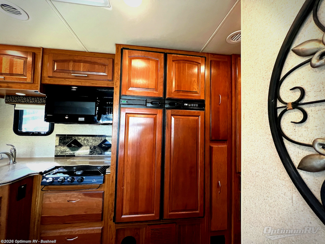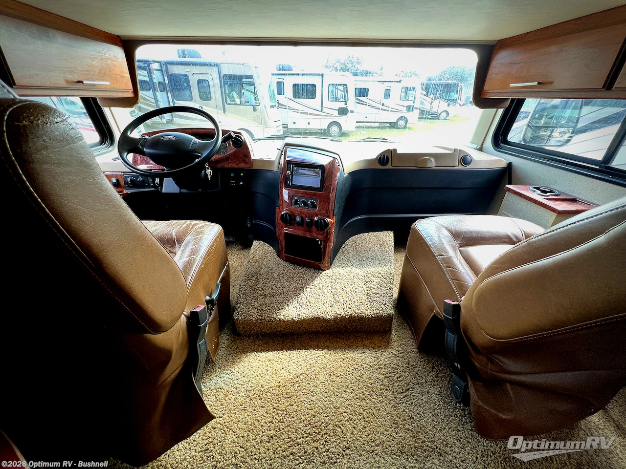 There are plenty of overhead cabinets throughout the motor home as well as exterior storage.