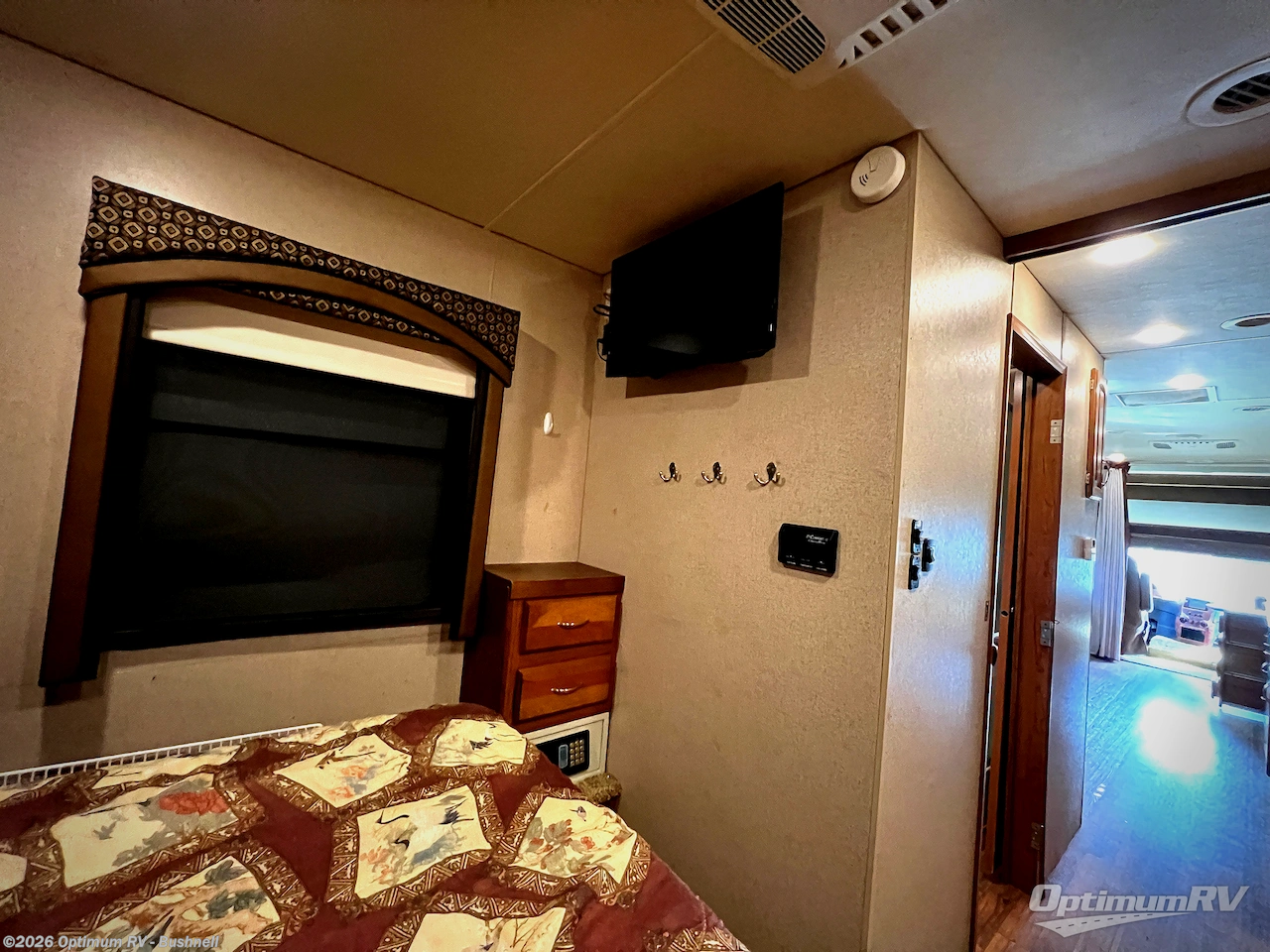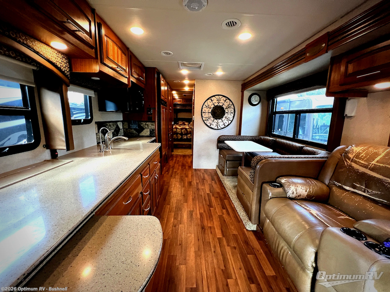 As you enter the Precept 35UN motor home by Jayco you will find that there are triple slides, one in the main living area and the other two slides in the bedroom.