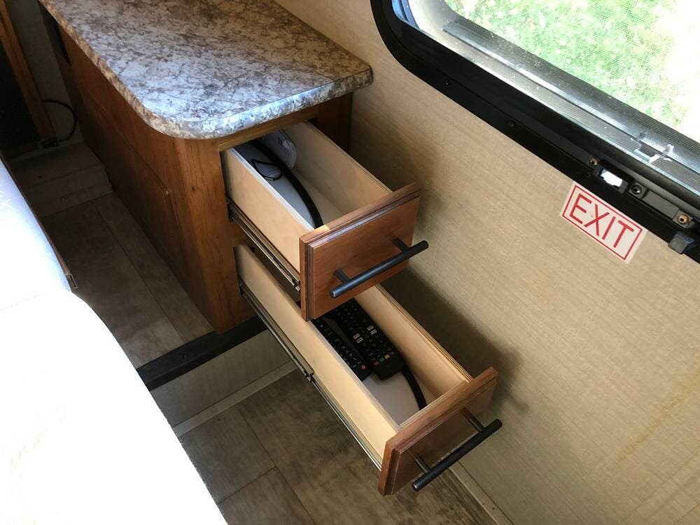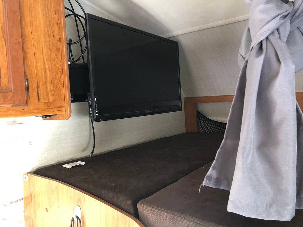 Enjoy entertainment with a TV, DVD player, and stereo system, while USB charging ports keep your devices powered.
