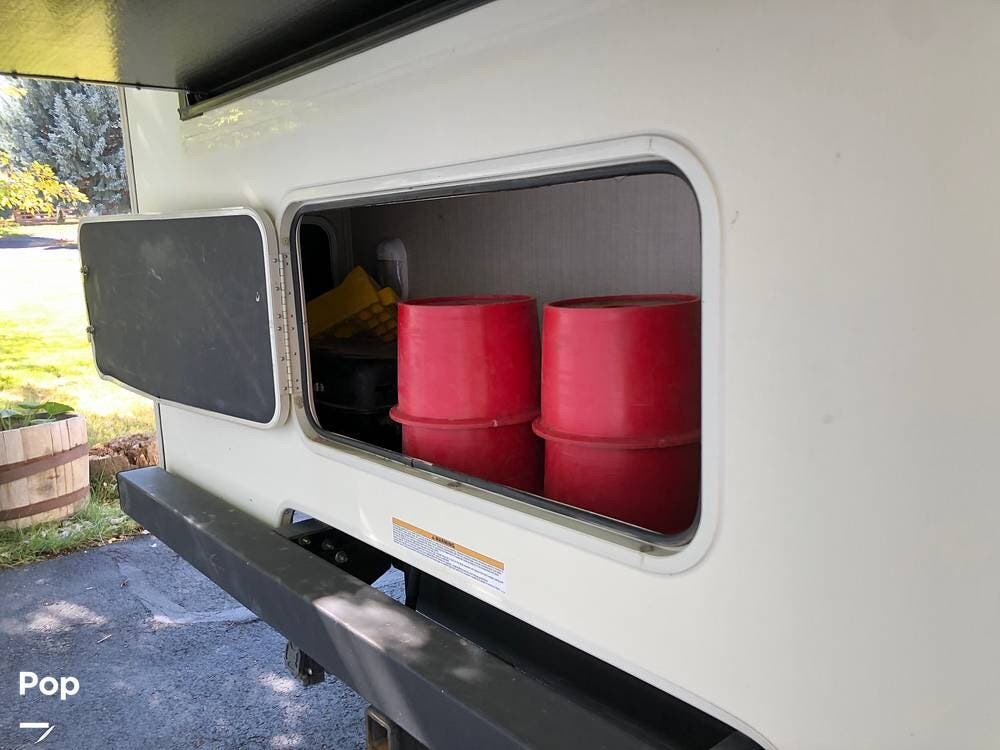 Additional features include a 55-gallon fuel tank, and two slide-outs for extra space. Enjoy the convenience of an exterior shower, an awning, and exterior storage for all your gear.