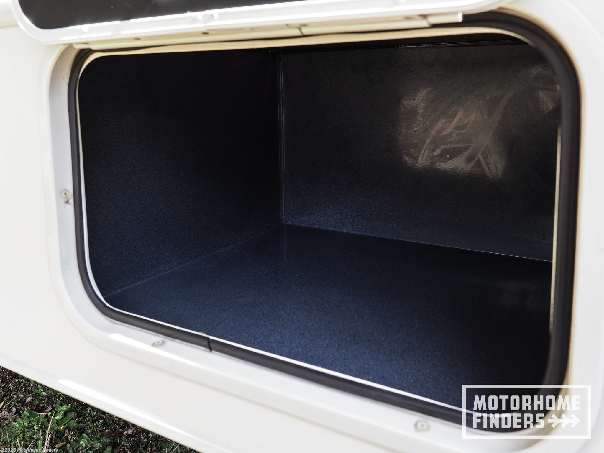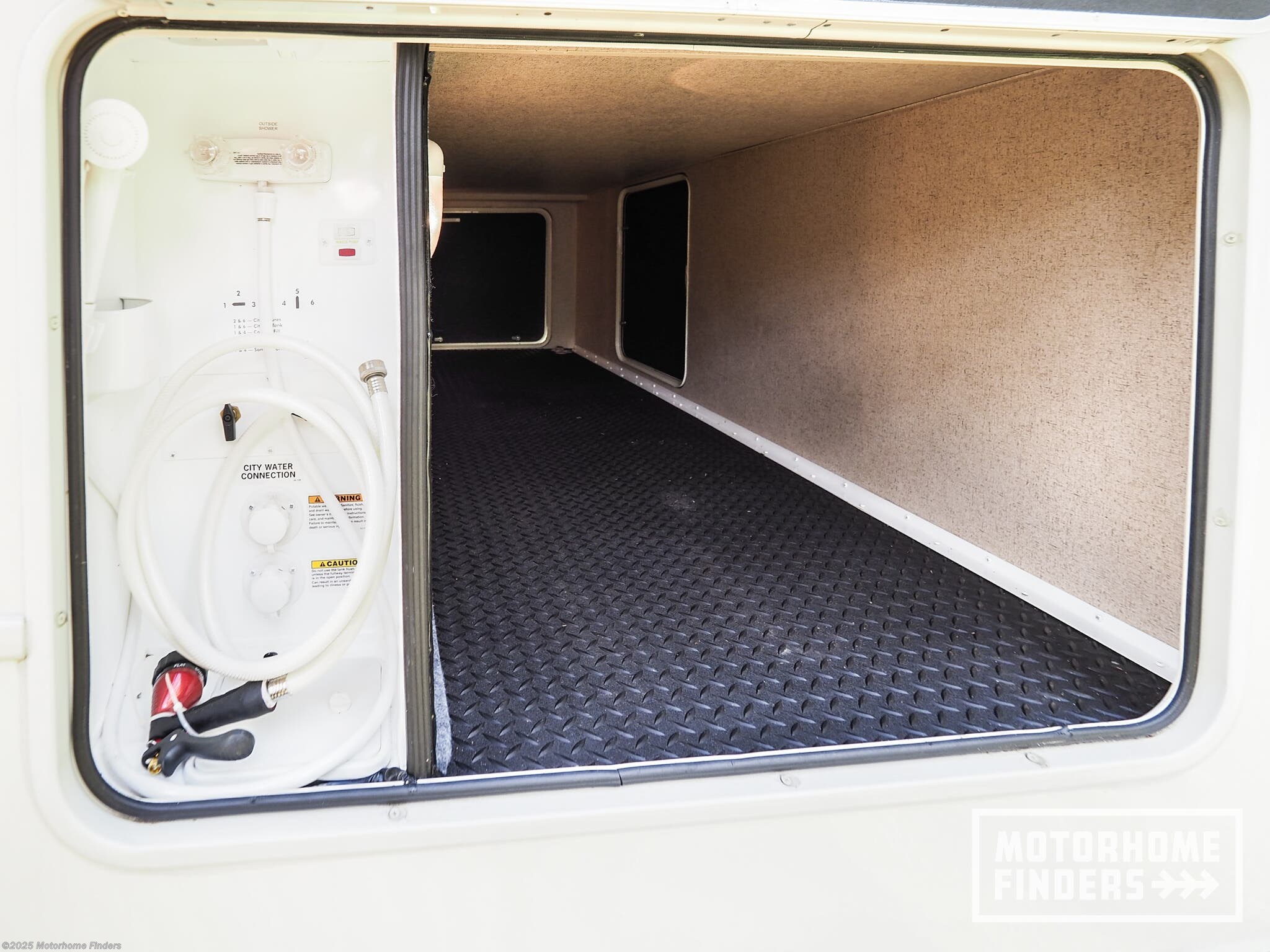 Outside Shower & Pass-Through Storage: Convenient for campsite cleanup and easy access to gear.