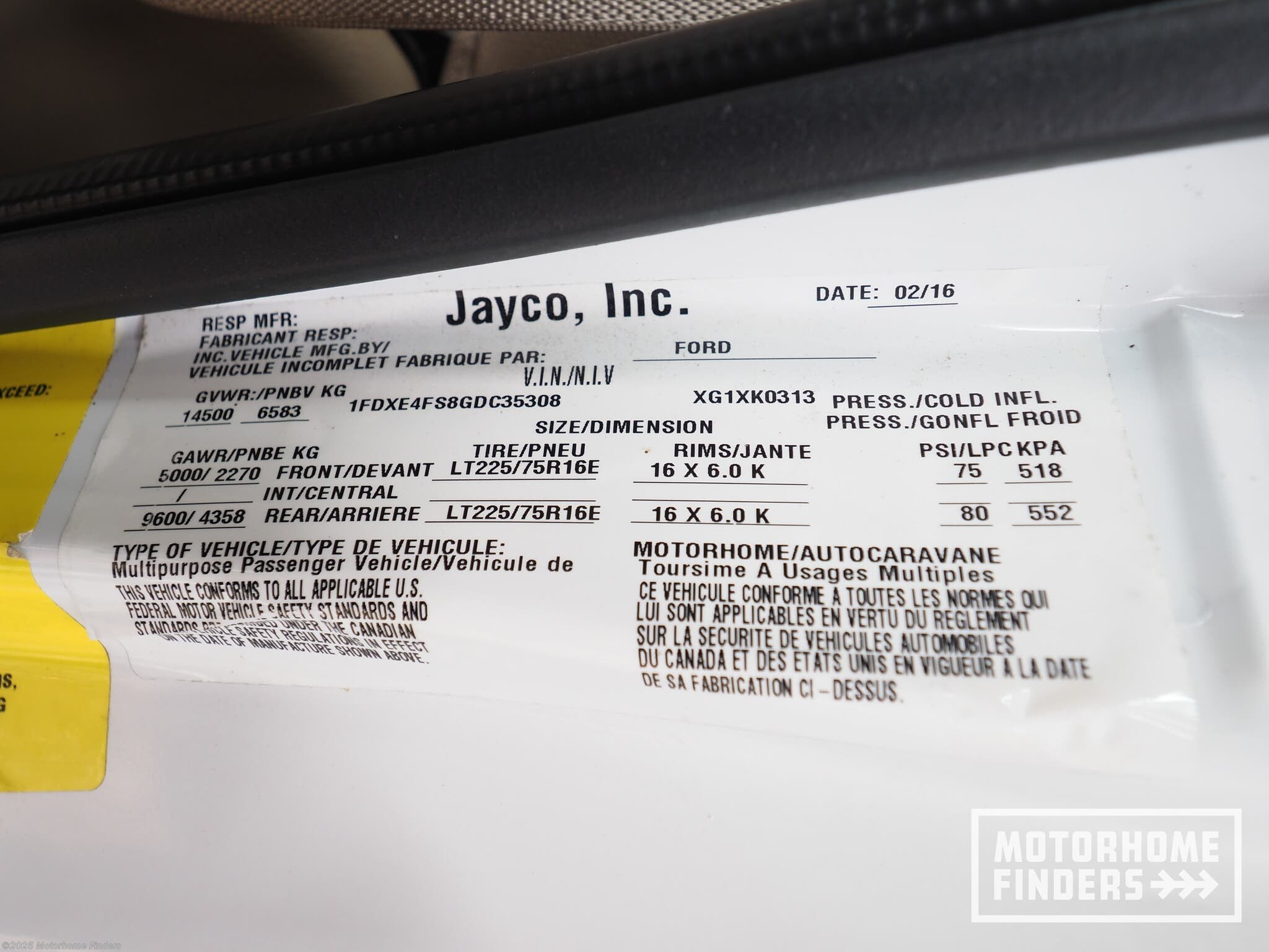 The 2016 Jayco Redhawk 29XK combines Jayco’s rock-solid construction, superior handling with JRide®, and thoughtful amenities for comfort on every mile. Built on the Ford E-450 chassis with the 6.8L Triton V10 engine, it delivers dependable power, stability, and one of the quietest rides in its class. This 32-foot coach offers sleeping for up to seven, abundant storage, and Jayco’s legendary attention to detail throughout.