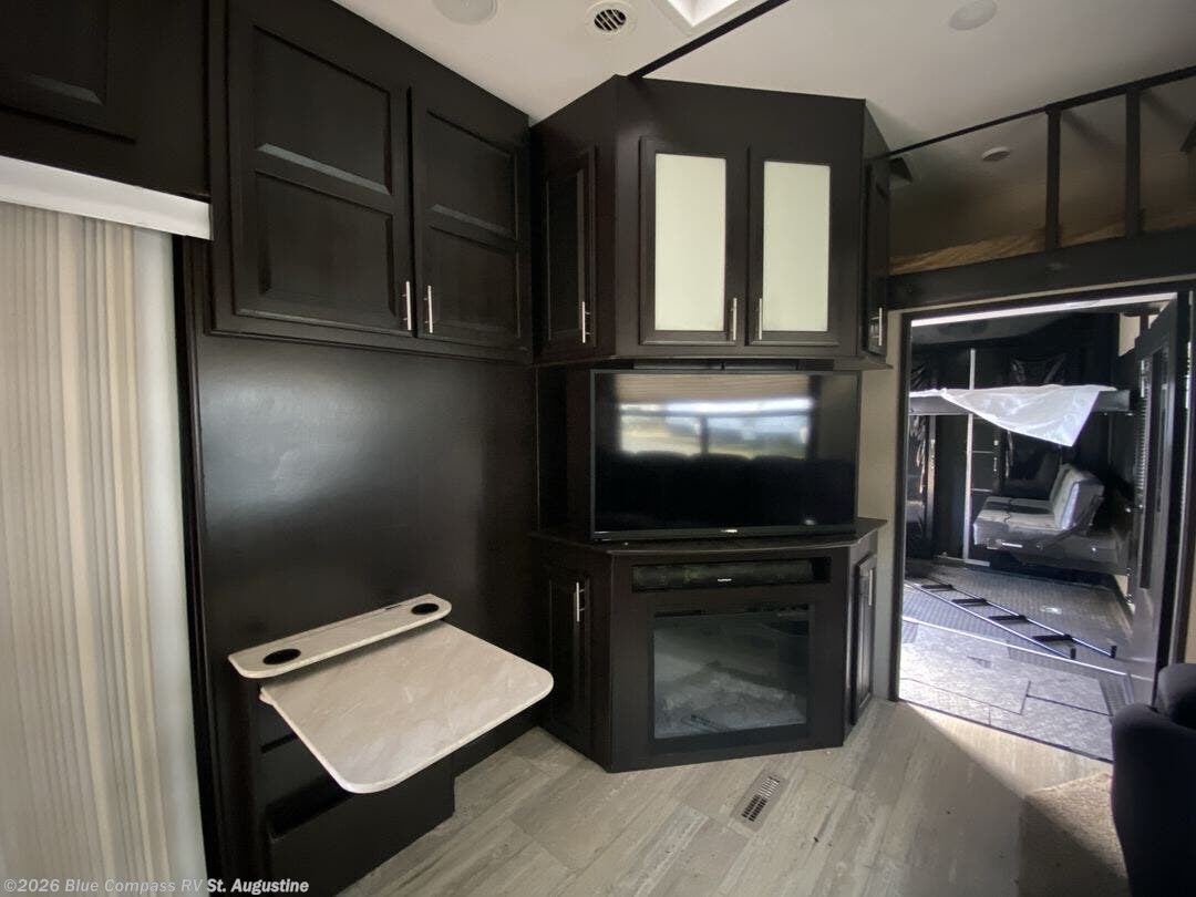 The outdoor fun doesn't have to stop with just the off-road toys, you can easily move your party to the patio deck on the 400W Jayco Seismic Wave toy hauler fifth wheel. Once it is too dark to be out on the trails, come to the fifth wheel, and enjoy the patio deck which includes a 39" TV for your enjoyment!