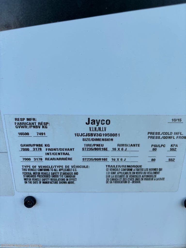 Request More Info on this 2016 Jayco Seismic Wave 355W Offered for sale by National Vehicle
